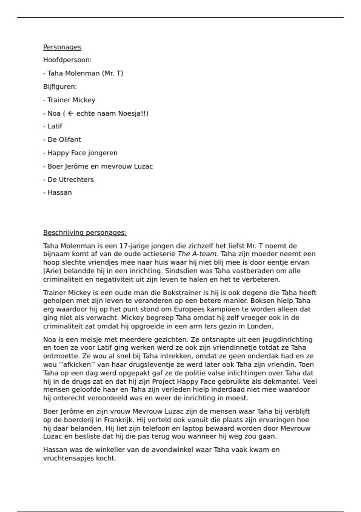 Beschrijving personages: