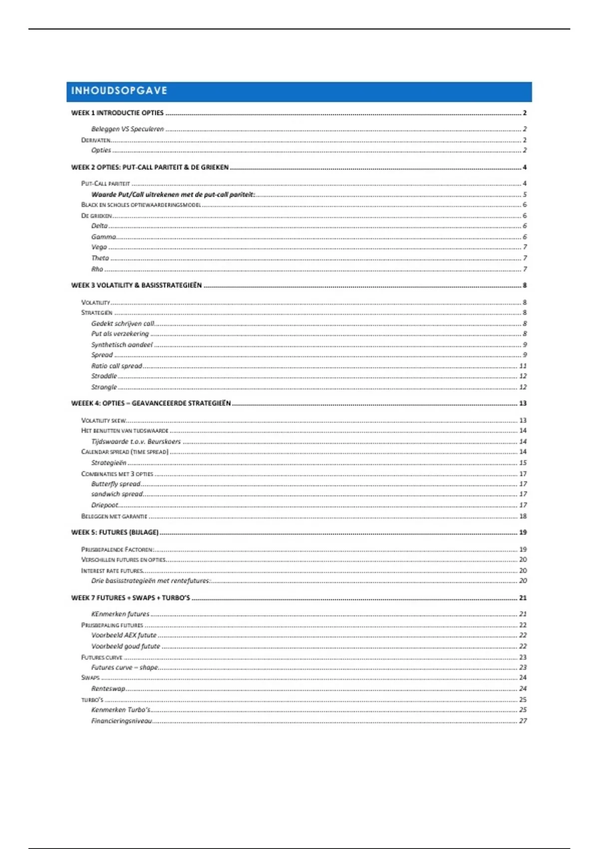 WEEK 3 VOLATILITY & BASISSTRATEGIEËN .............................................................................................................................................................. 8