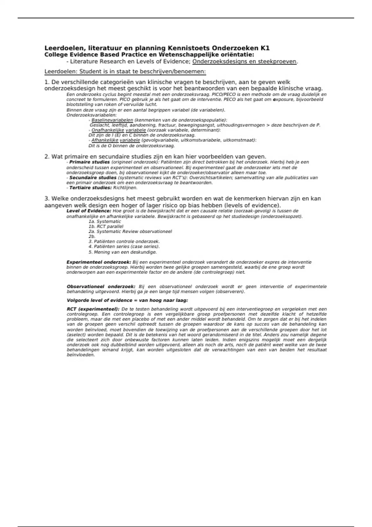 - Literature Research en Levels of Evidence; Onderzoeksdesigns en steekproeven.