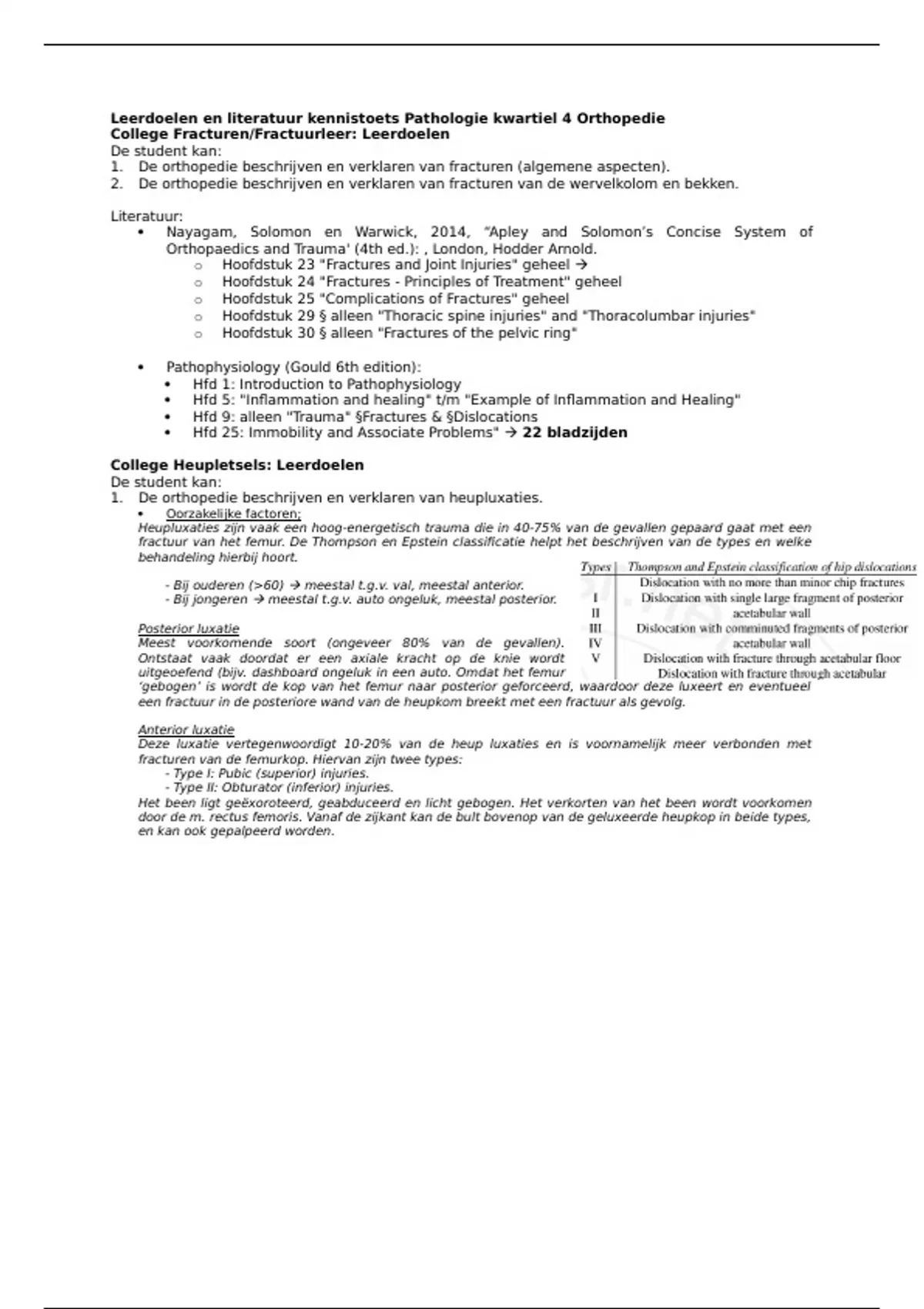 Leerdoelen en literatuur kennistoets Pathologie kwartiel 4 Orthopedie