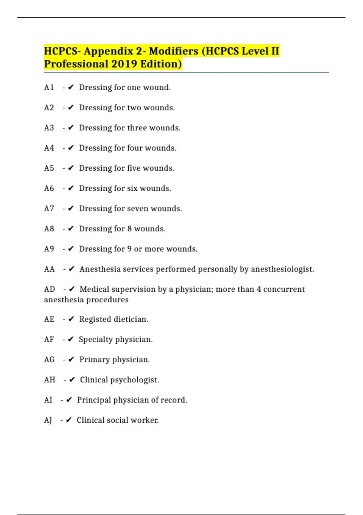 HCPCS- Appendix 2- Modifiers (HCPCS Level II Professional 2019 Edition)