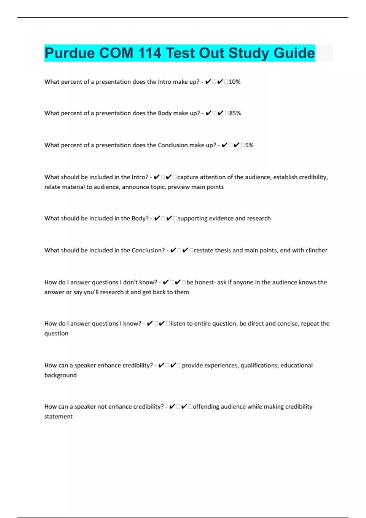 Purdue COM 114 |67 Test Out Study Guide Questions And Answers
