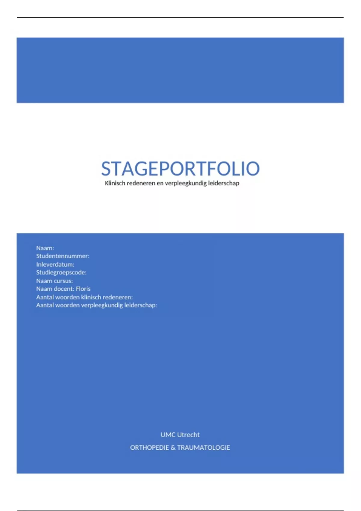 Volledig *Stageportfolio* inclusief Klinisch redeneren + VPK leiderschap
