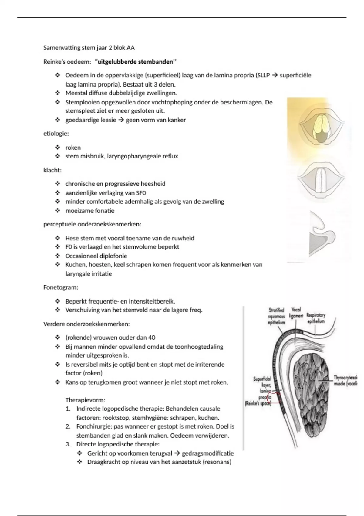 factoren: rooktstop, stemhygiëne: schrapen, kuchen.