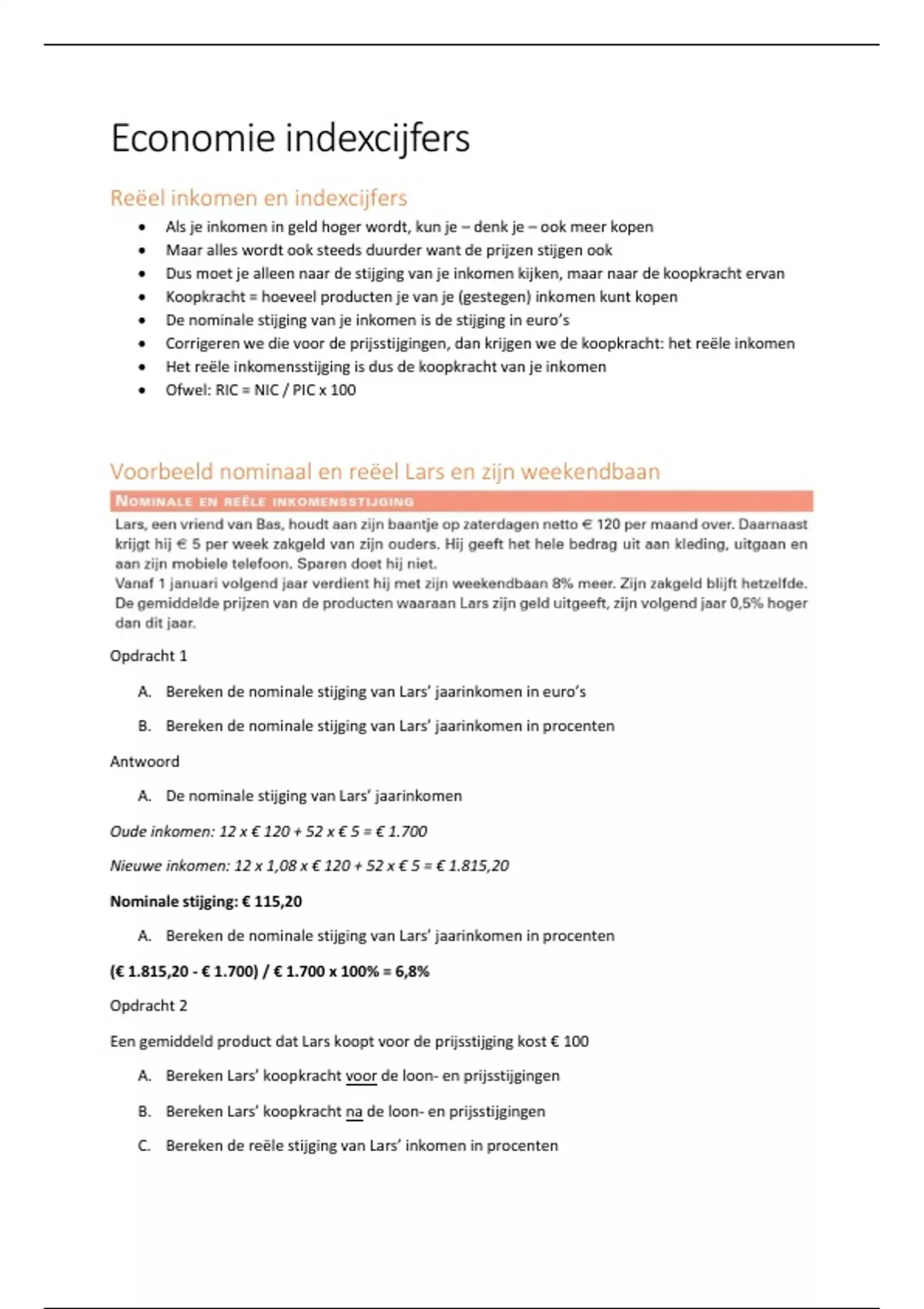 C. Bereken de reële stijging van Lars’ inkomen in procenten
