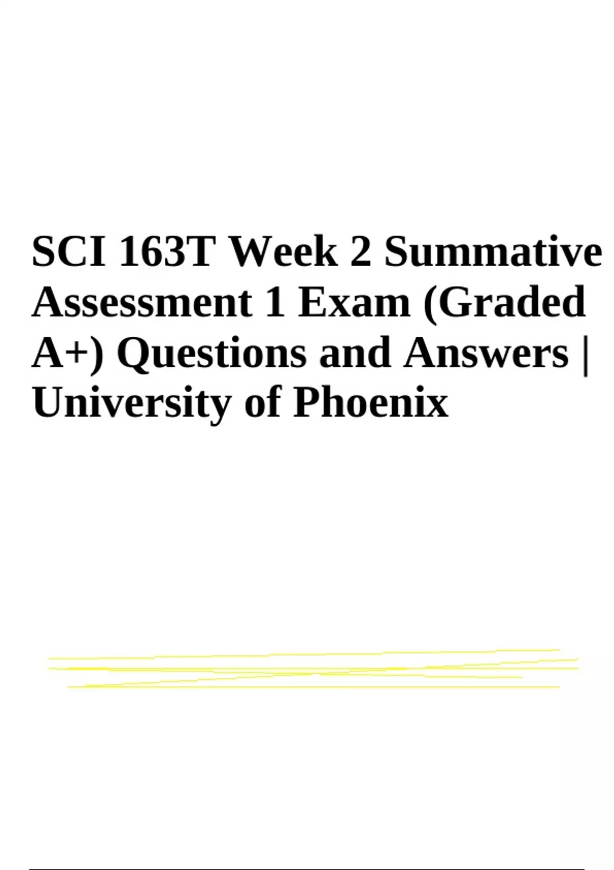 SCI 163T Summative Exam Questions and Answers Latest 2024 University of Phoenix