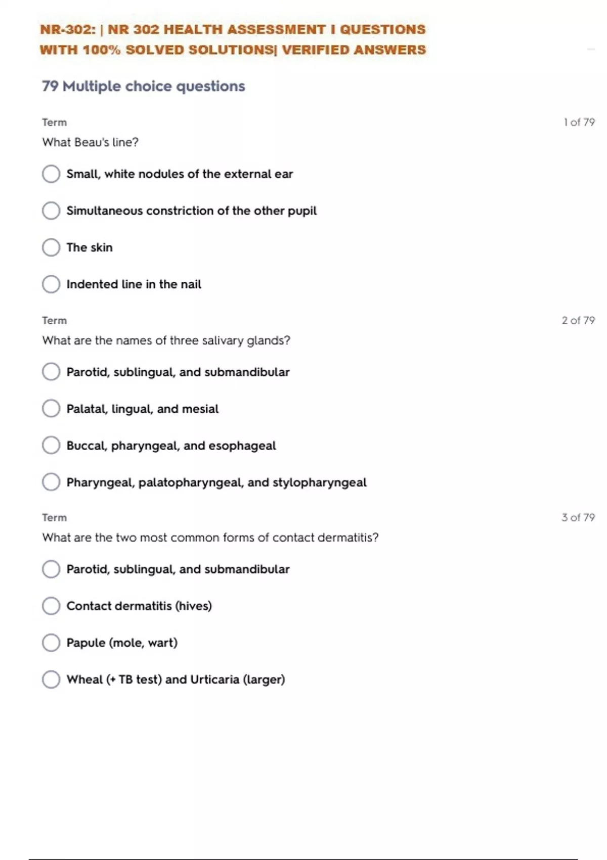 NR 302 HEALTH ASSESSMENT I WEEK 3-4 QUESTIONS WITH 100% SOLVED SOLUTIONS