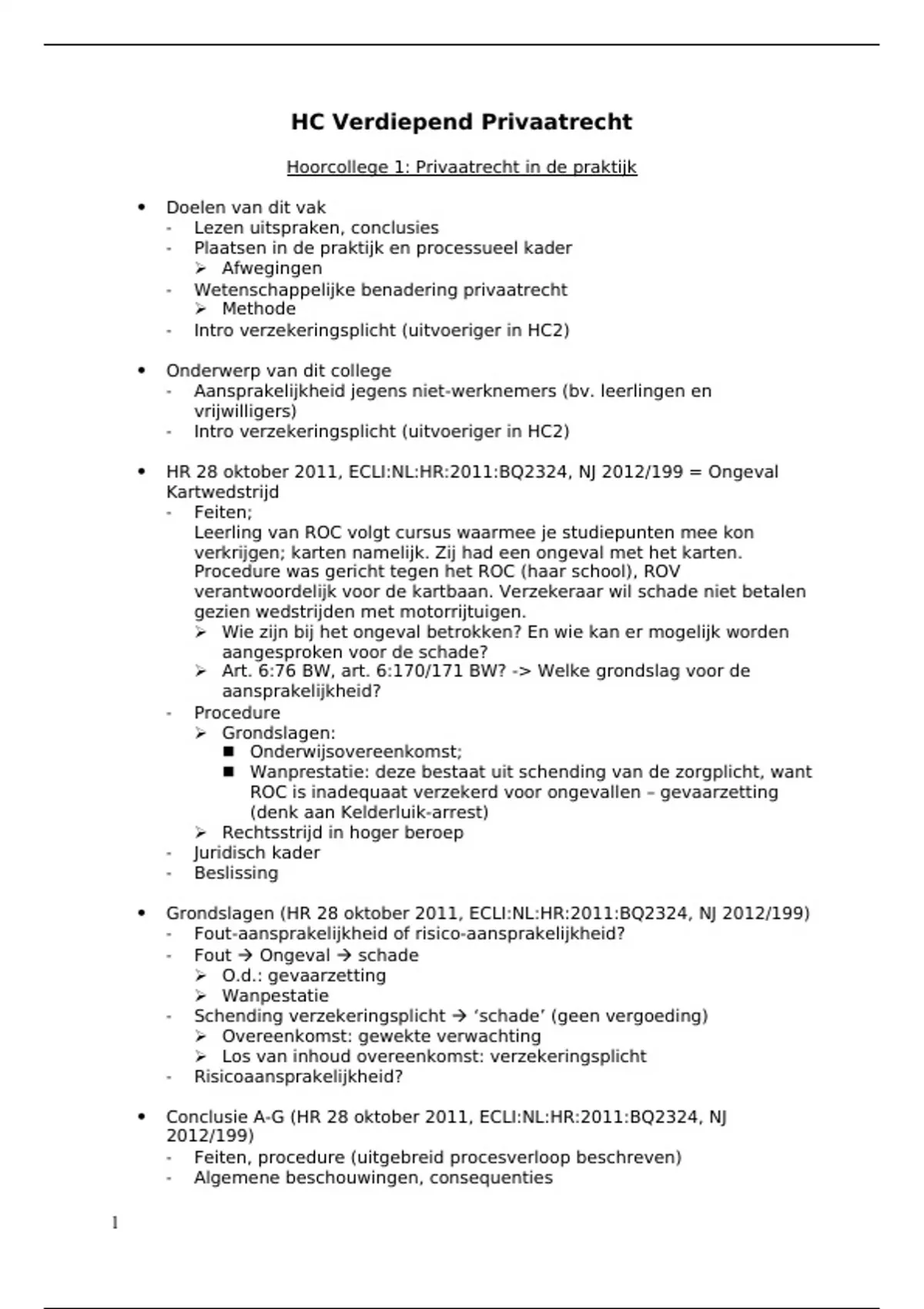 HC1 Rechtsvinding: zorgplicht en eigen schuld