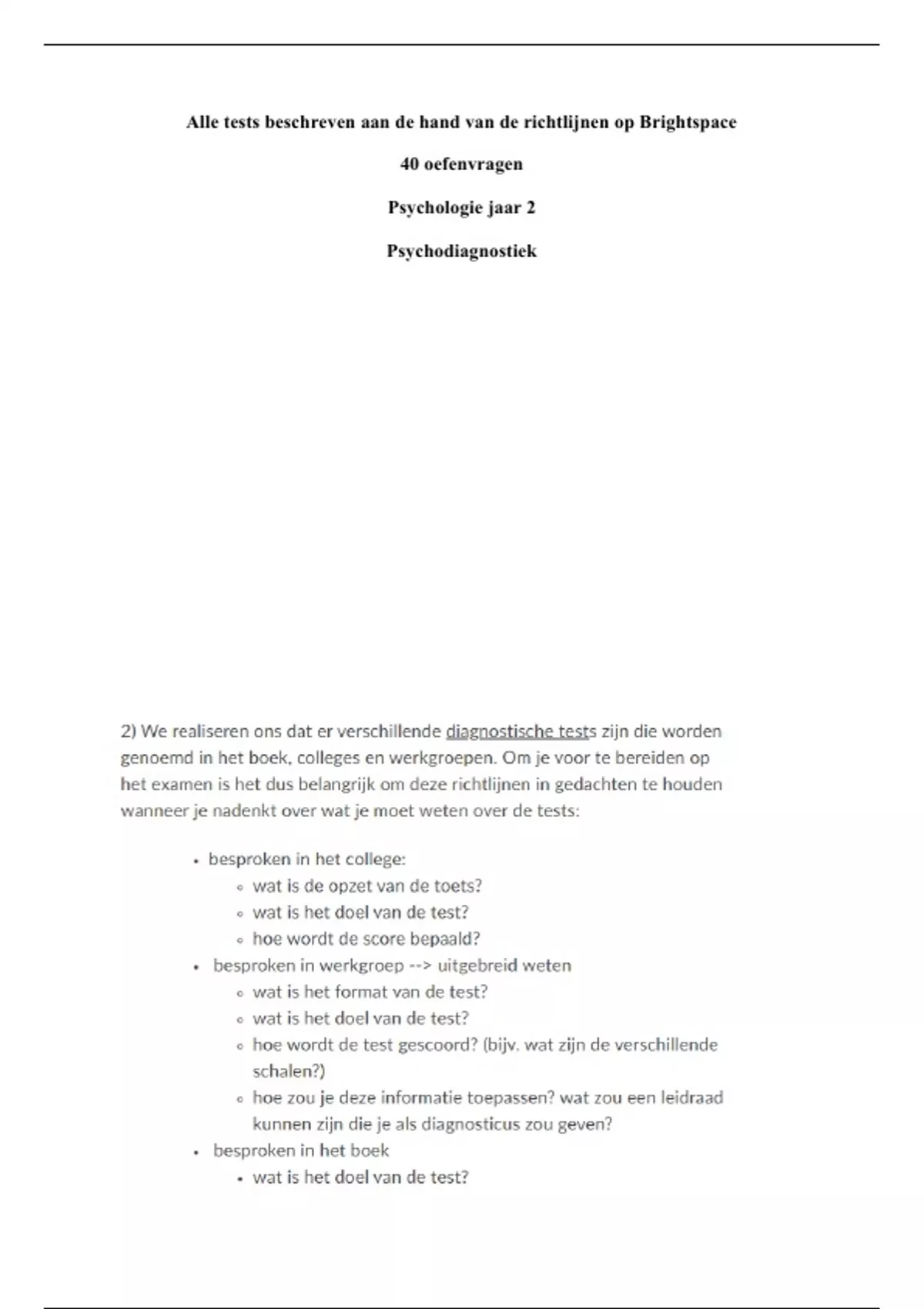 Dit document bevat een overzicht van alle tests, met oefenvragen