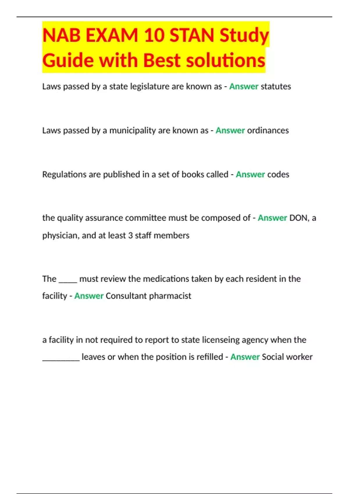 nab exam 10 stan study guide with best solutions