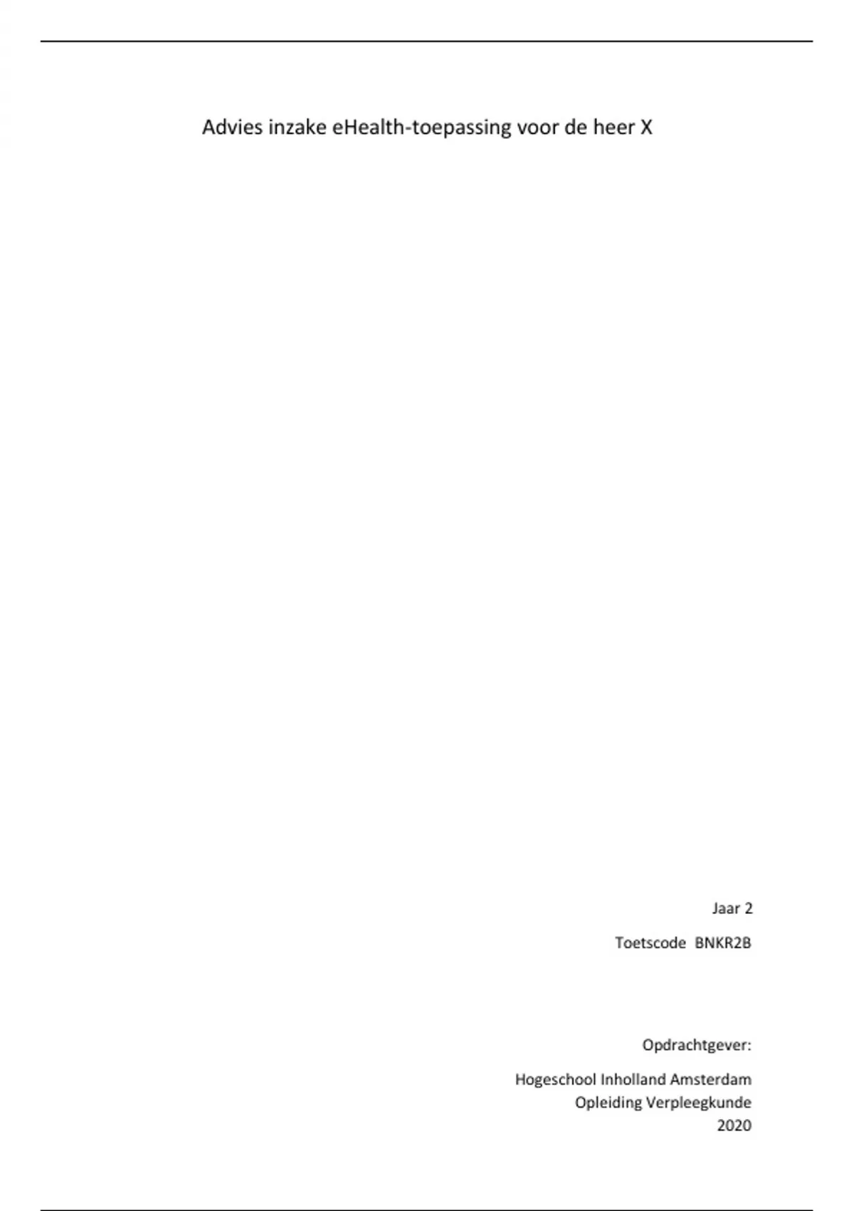 Advies voor eHealth als onderdeel van klinisch redeneren. In dit document wordt de casus gepresenteerd en de ontwikkeling van de eHealth toepassing beschreven. Met dit verslag is 10 gehaald!