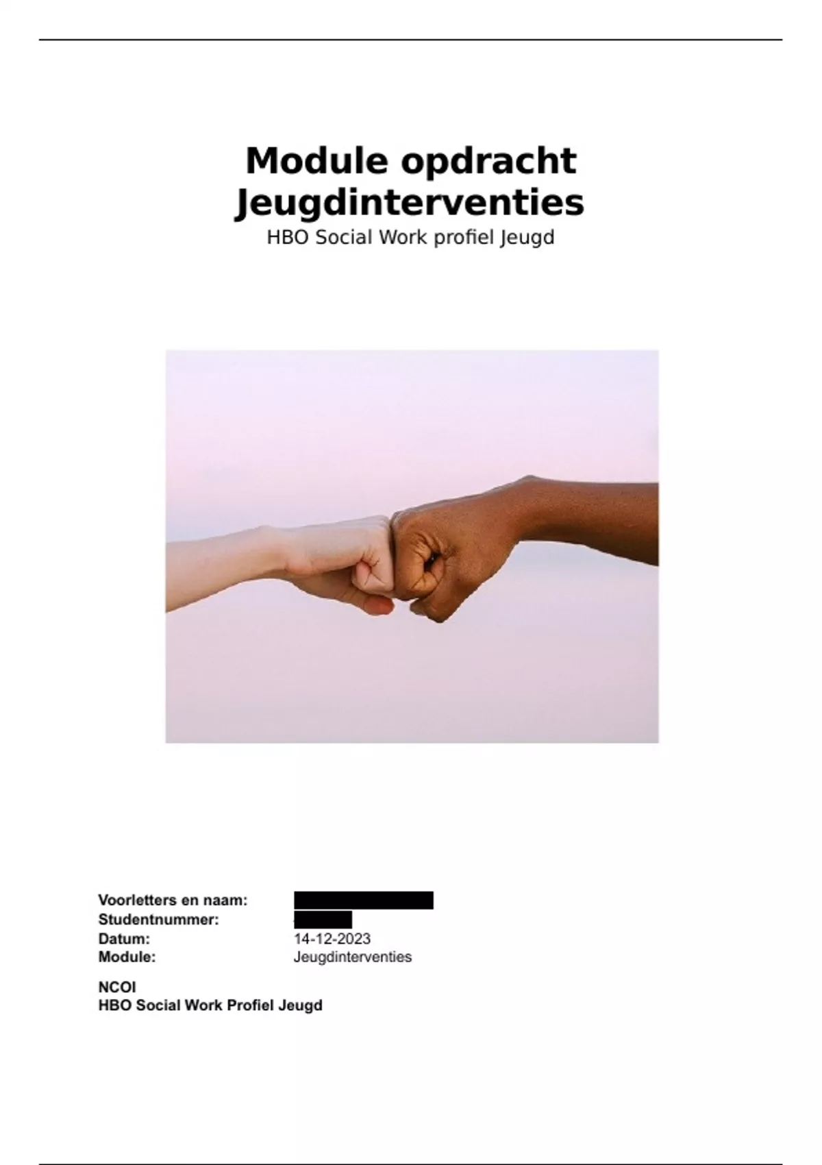 onderdeel van de opleiding is het vak Jeugdinterventies. Dit vak rond ik af met deze