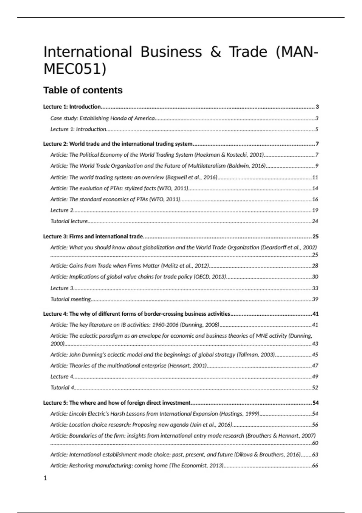 Article: The World Trade Organization and the Future of Multilateralism (Baldwin, 2016)................................9