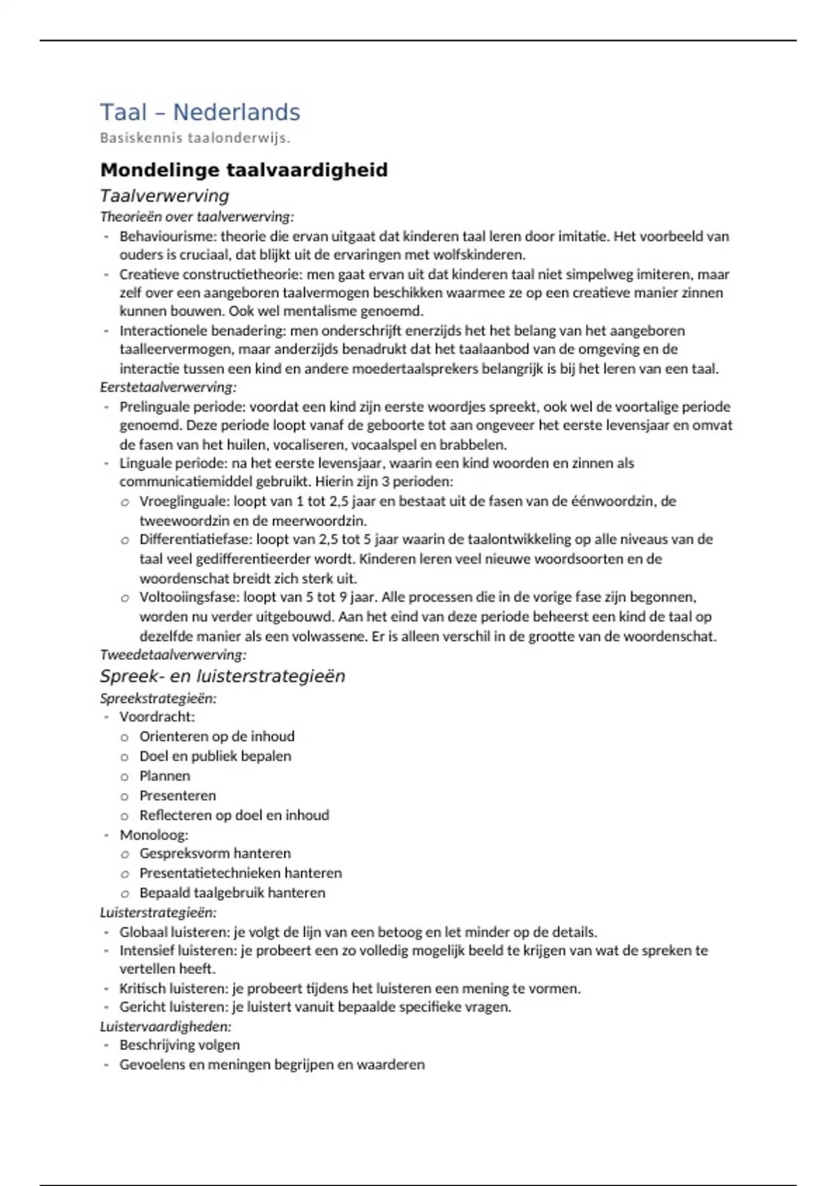 Samenvatting voor de KTV Taal-Nederlands Propedeuse fase