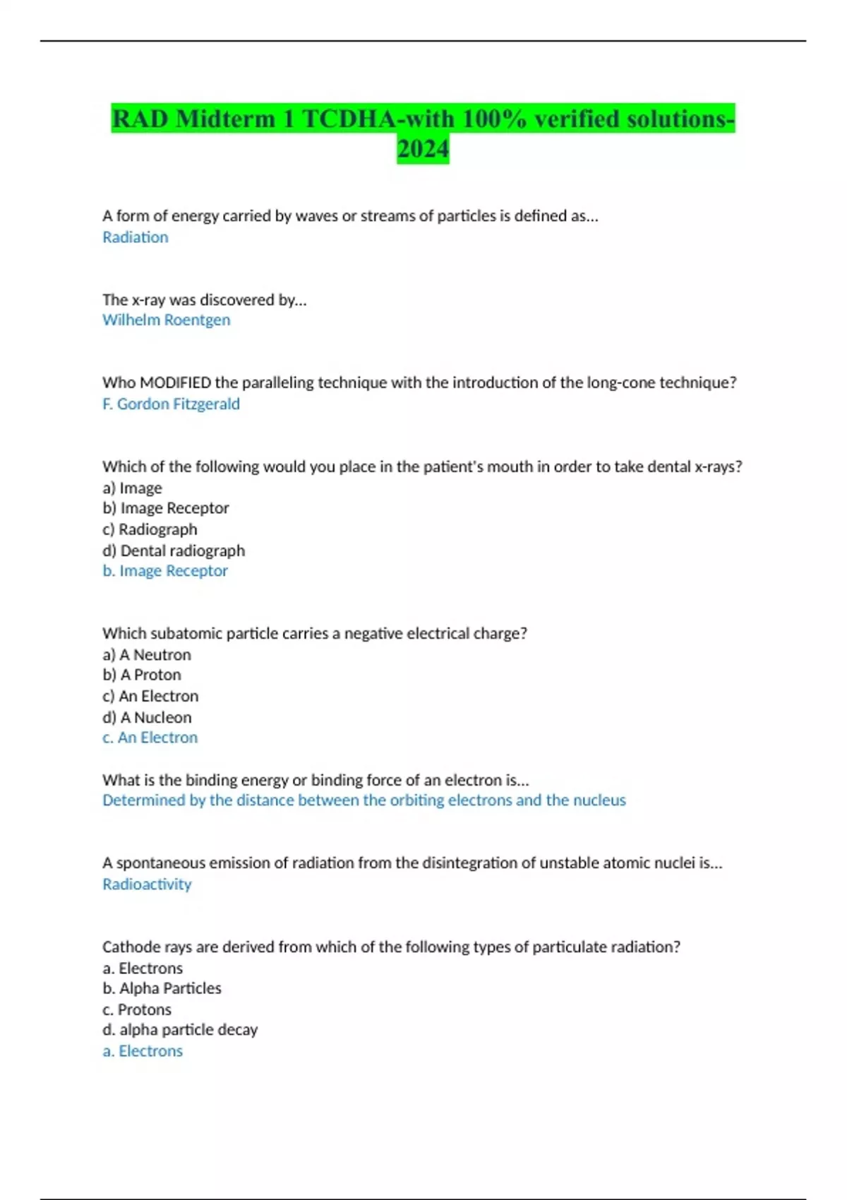RAD Midterm 1 TCDHA-with 100% verified solutions-2024
