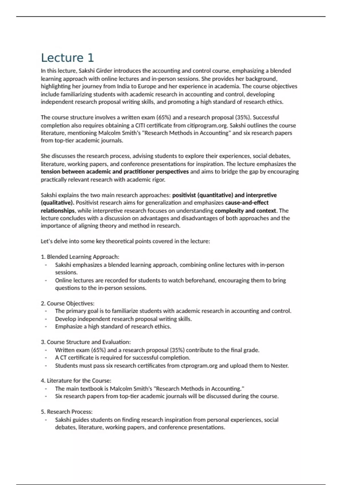 In this summary all the lectures uploaded on Brightspace have been summarized.