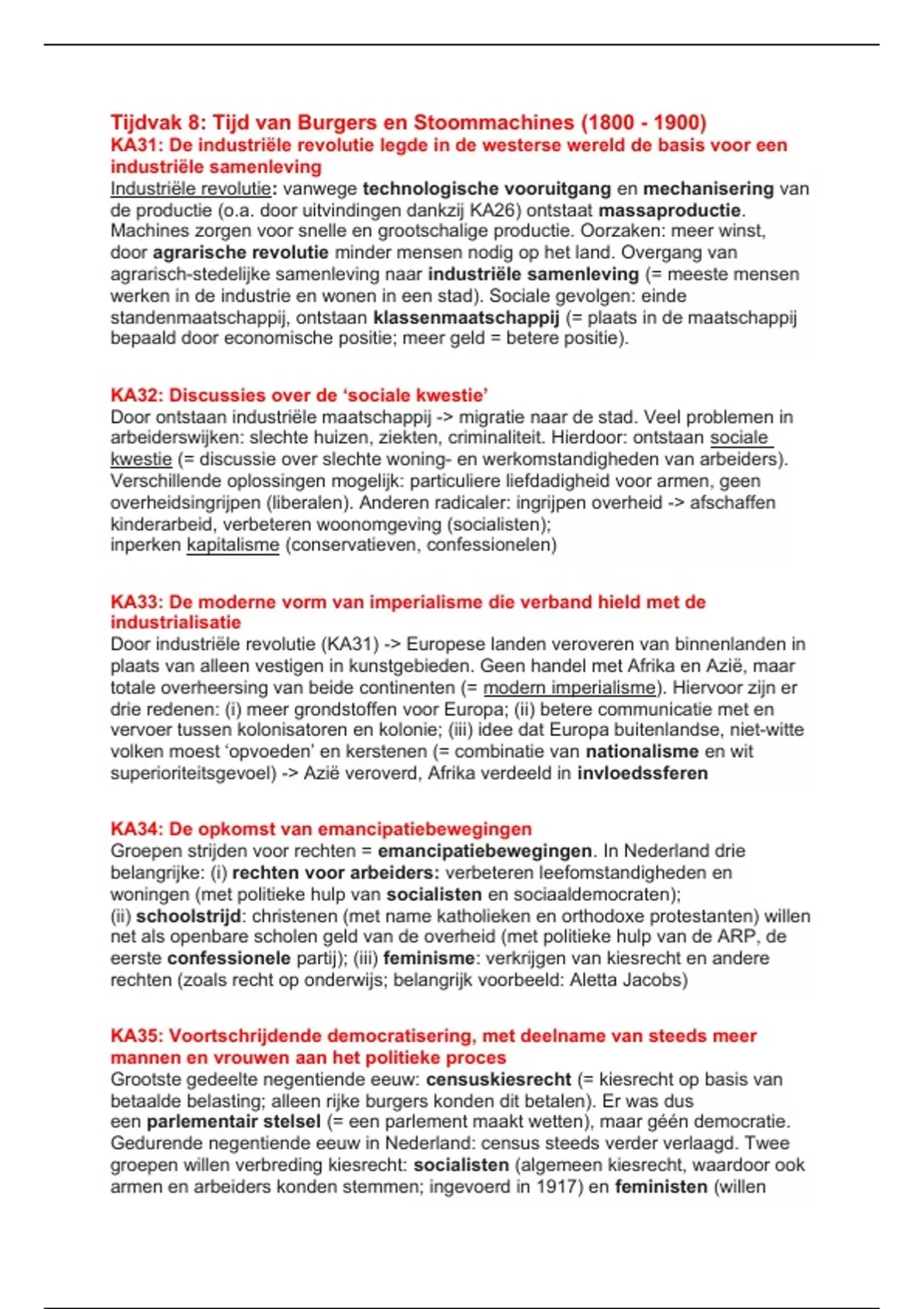 Samenvatting Kenmerkende aspecten tijdvak 8