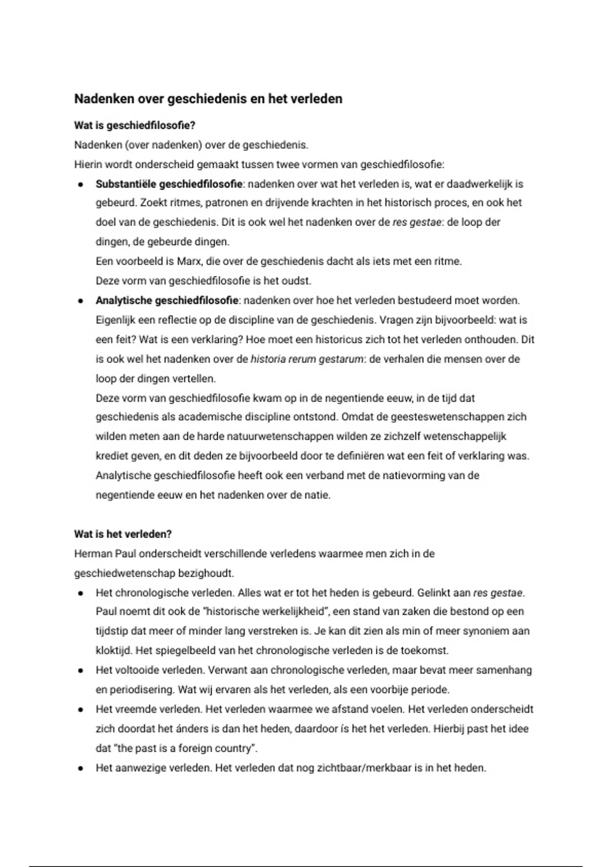 ● Substantiële geschiedfilosofie: nadenken over wat het verleden is, wat er daadwerkelijk is