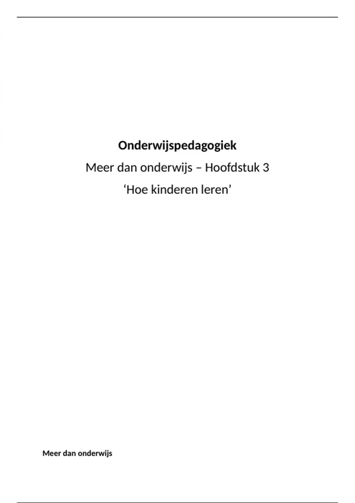 SAMENVATTING - MEER DAN ONDERWIJS H3
