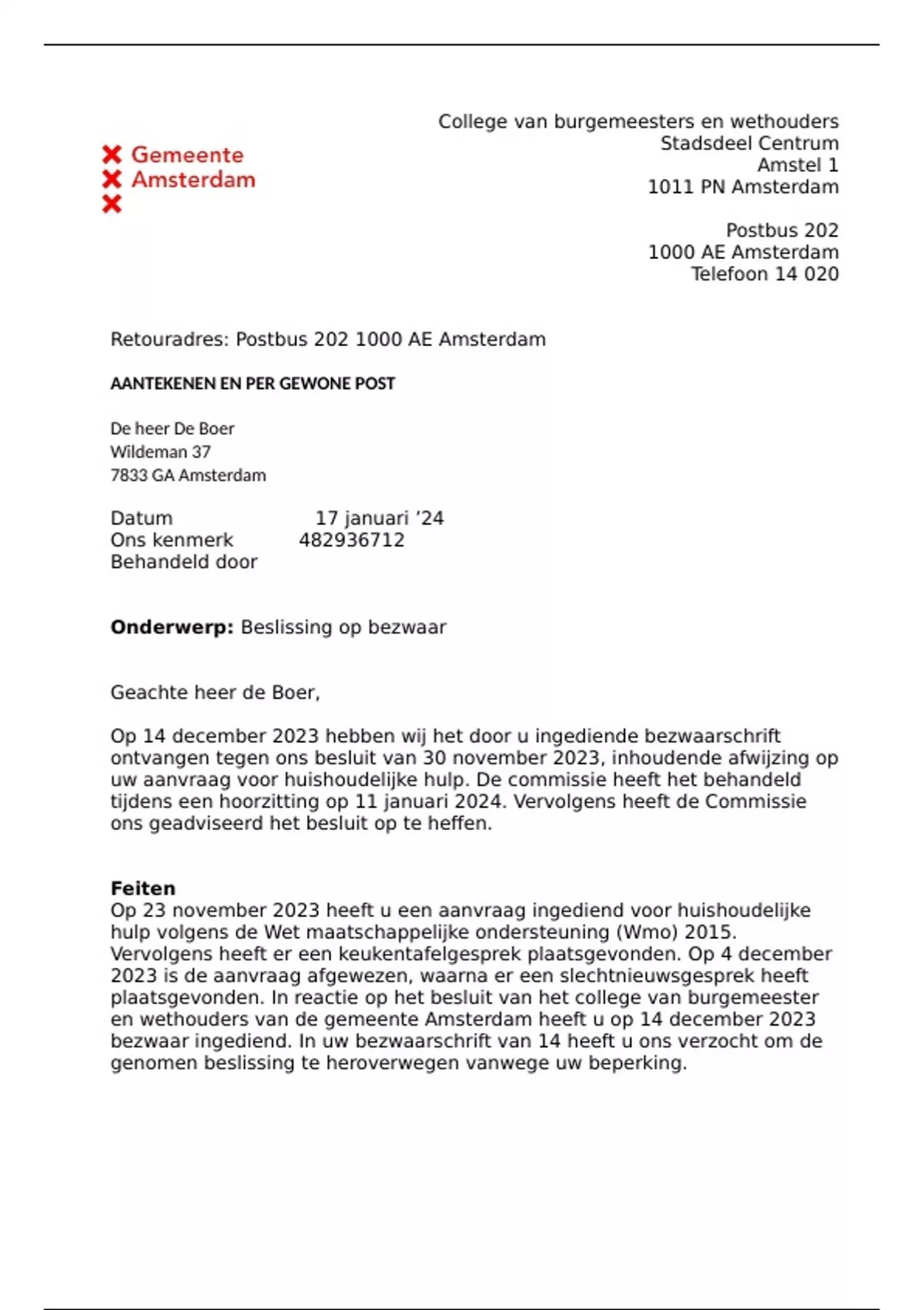 en wethouders van de gemeente Amsterdam heeft u op 14 december 2023