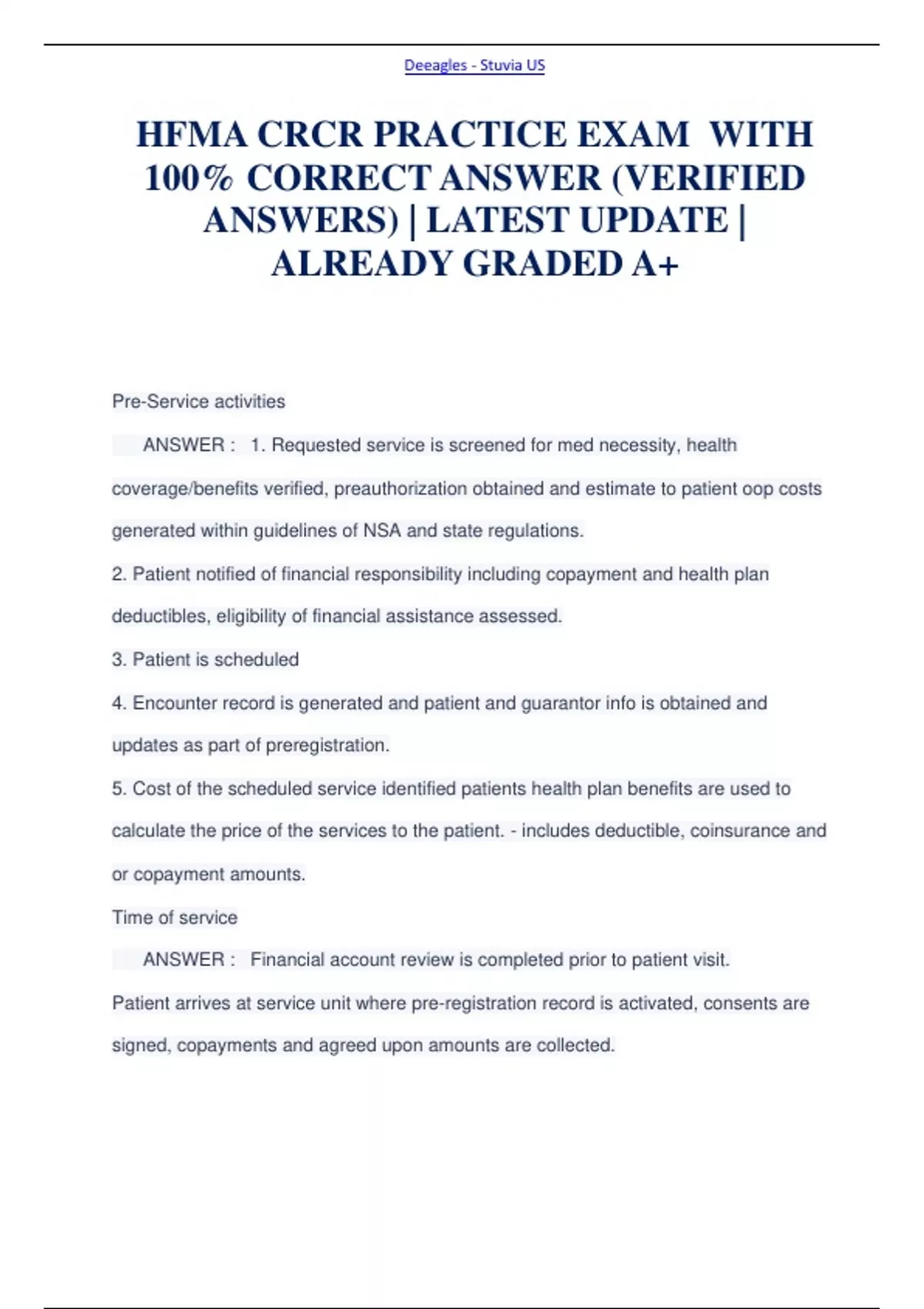 Preservice - patient is scheduled and registered for service. Patients service costs are