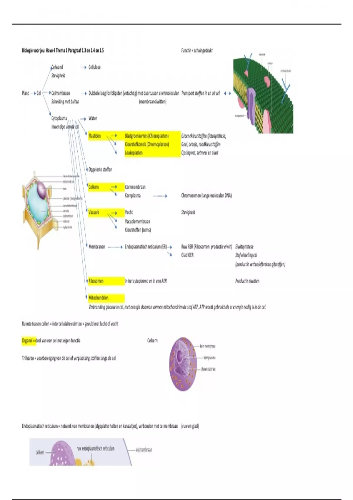 Biologie voor jou Havo 4 Thema 1 Paragraaf 1.3 en 1.4 en 1.5 Functie = schuingedrukt