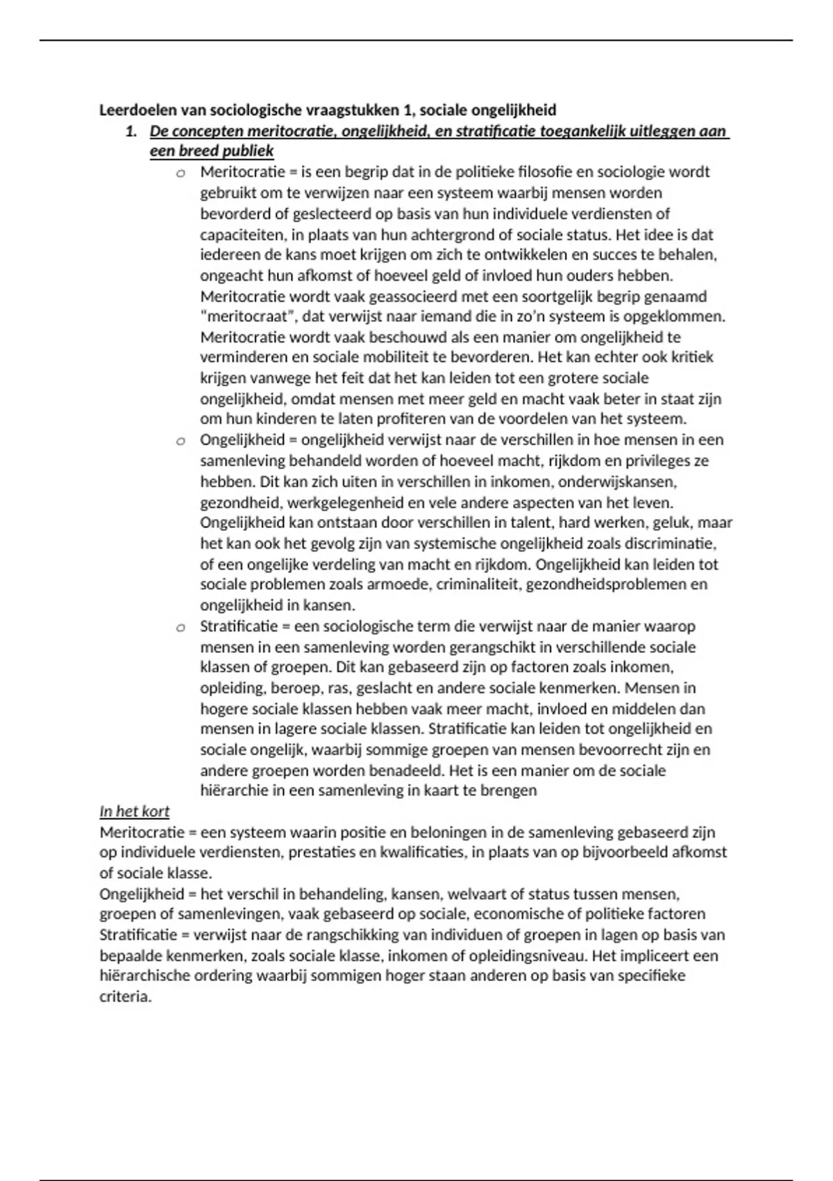 1. De concepten meritocratie, ongelijkheid, en stratificatie toegankelijk uitleggen aan