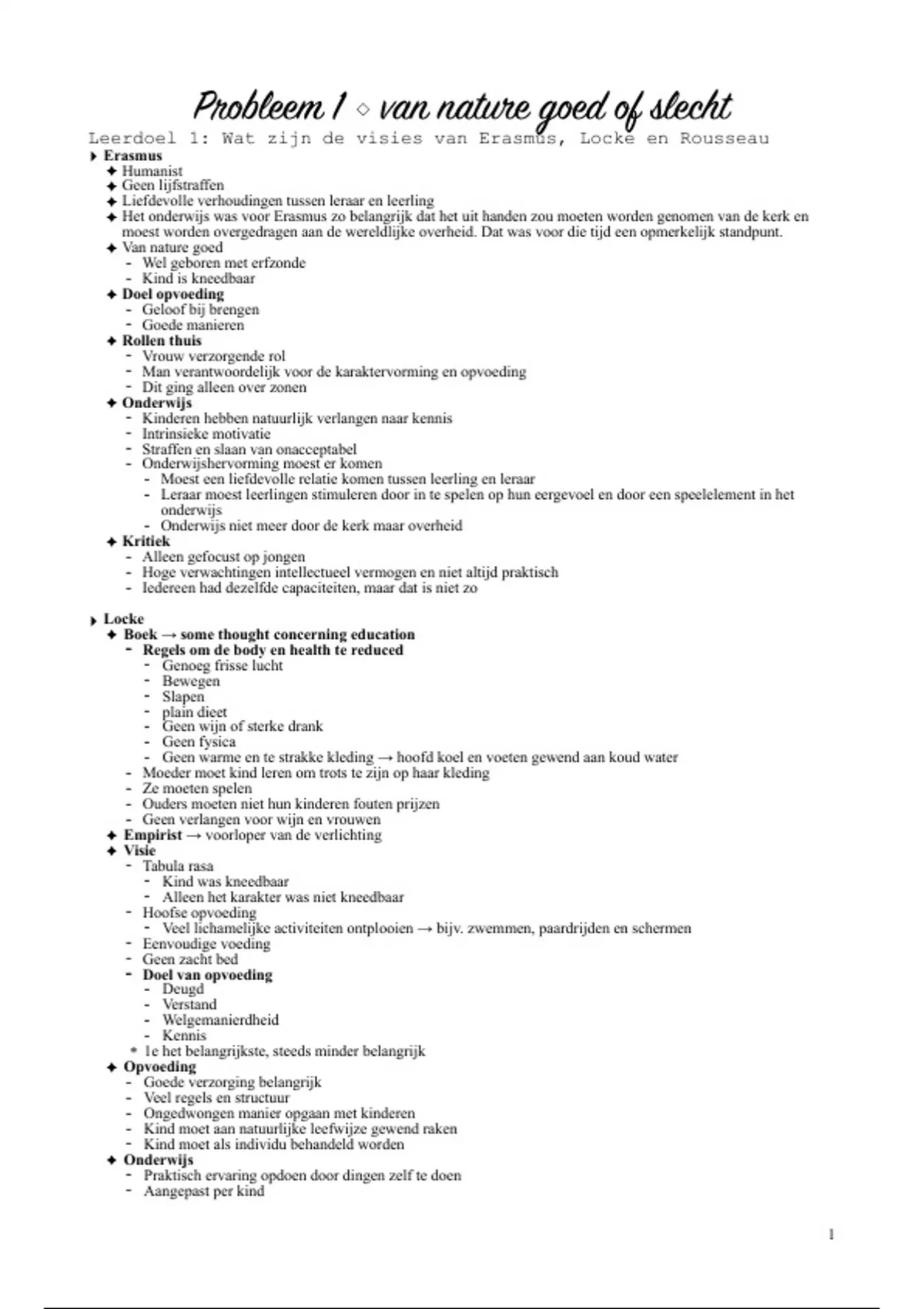 Leerdoel 1: Wat zijn de visies van Erasmus, Locke en Rousseau