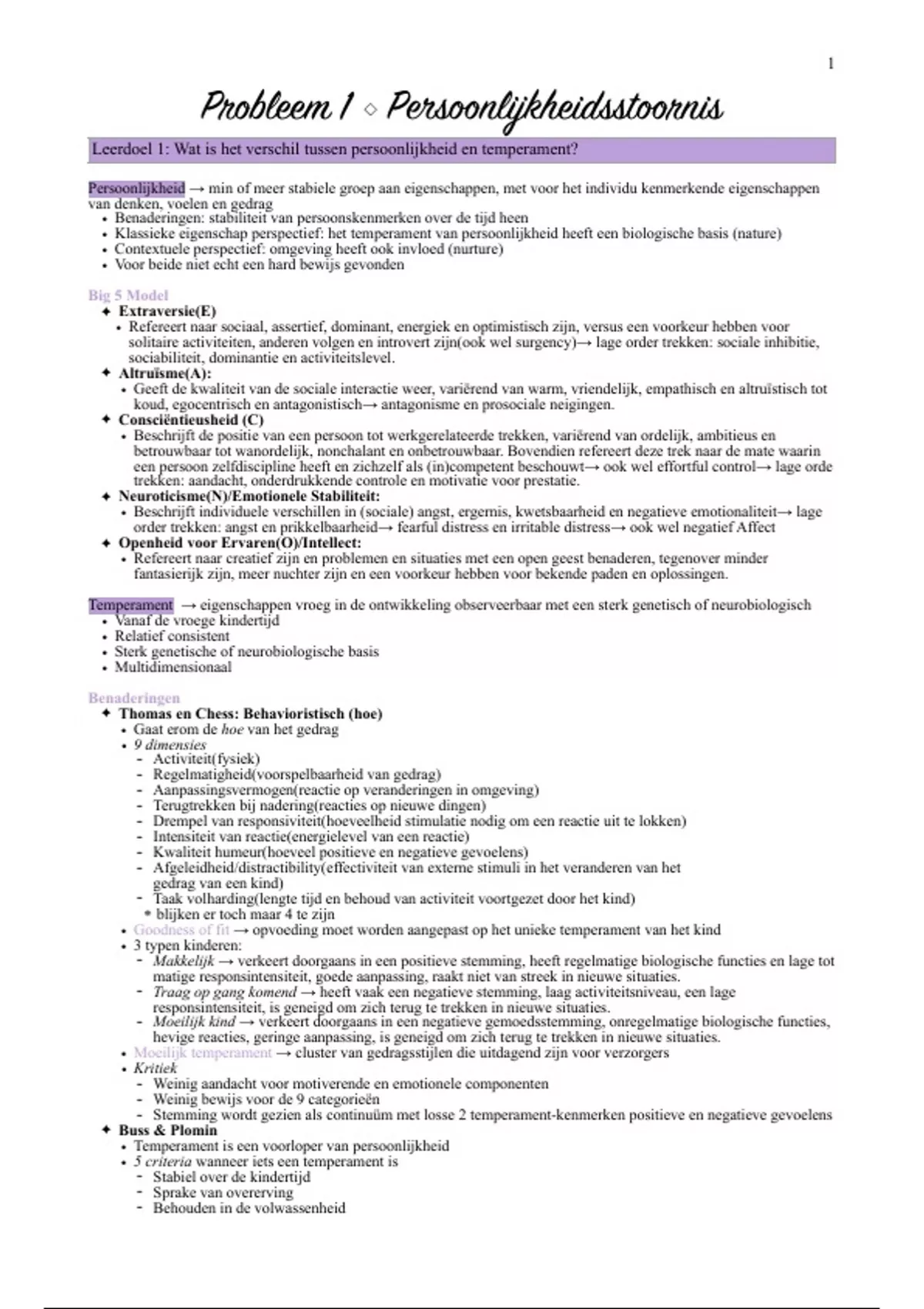 Leerdoel 1: Wat is het verschil tussen persoonlijkheid en temperament?