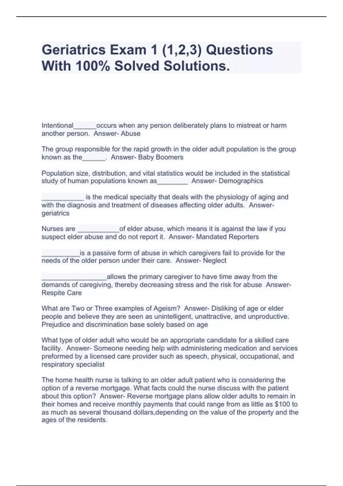 Geriatrics Exam 1 (1,2,3) Questions With 100% Solved Solutions.