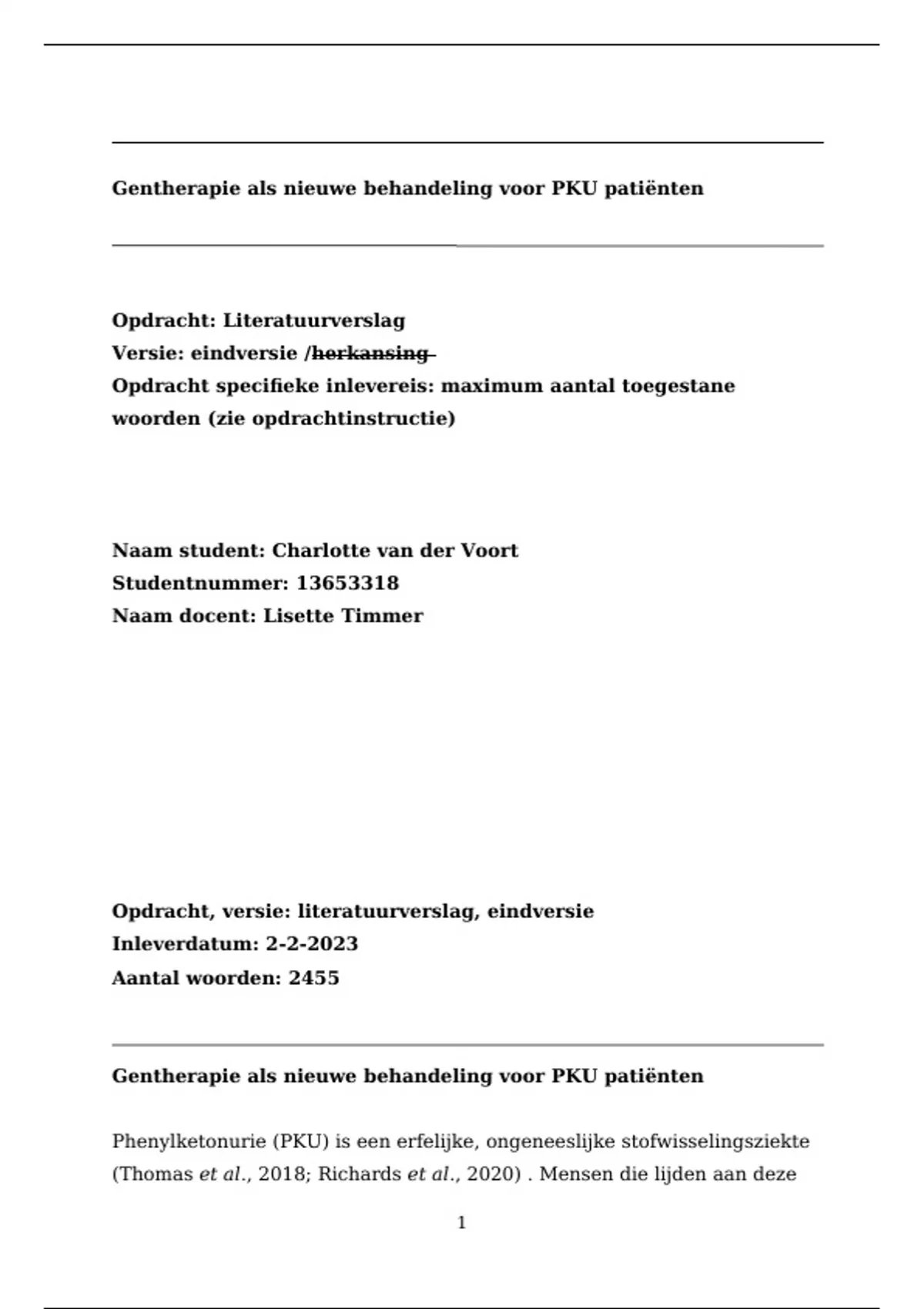 Een literatuurverslag van het vak miniscriptie over het onderwerp PKU.