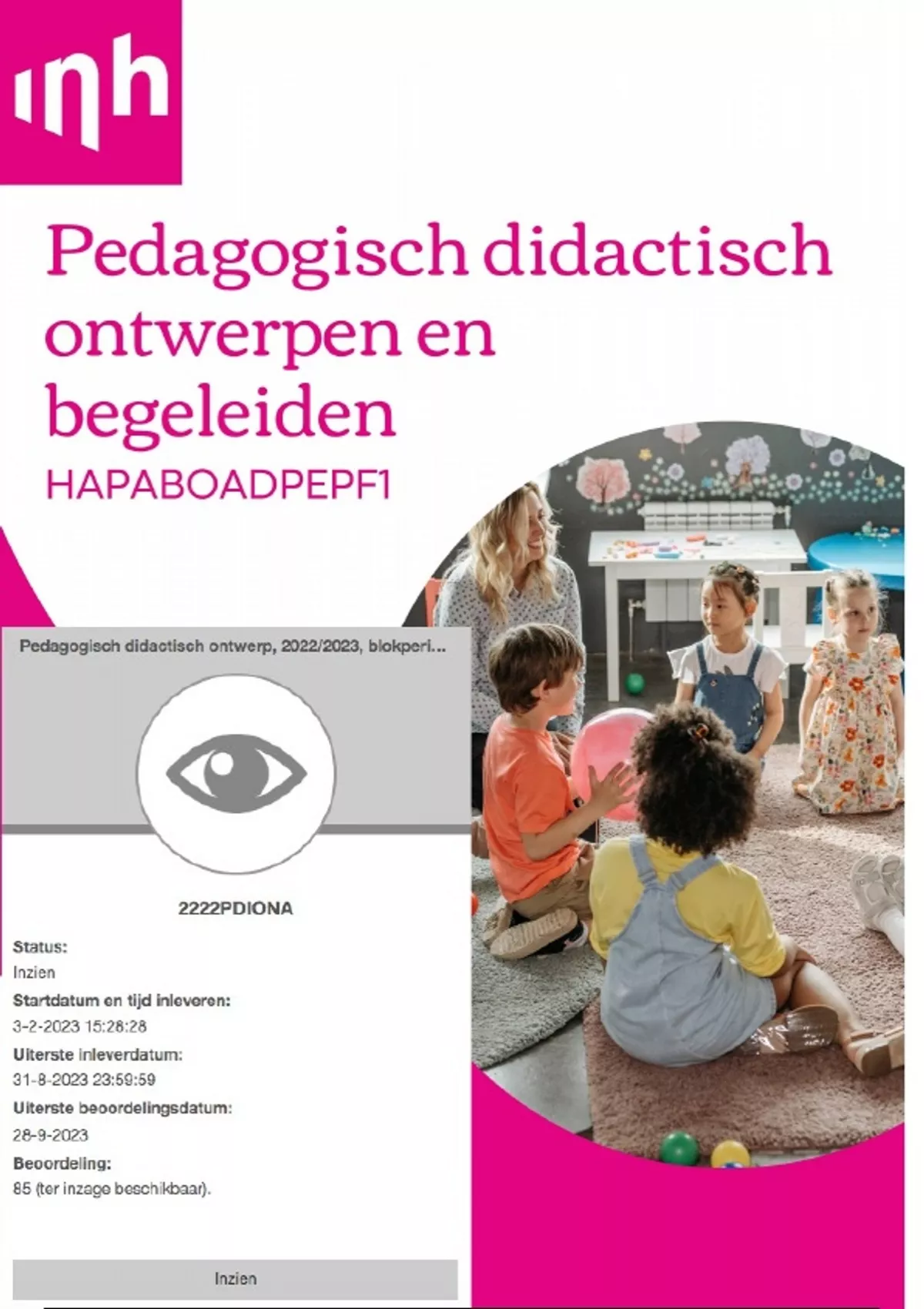 Portfolio voor de onderwijseenheid "Pedagogisch didactisch ontwerpen en begeleiden" van de opleiding AD-PEP.