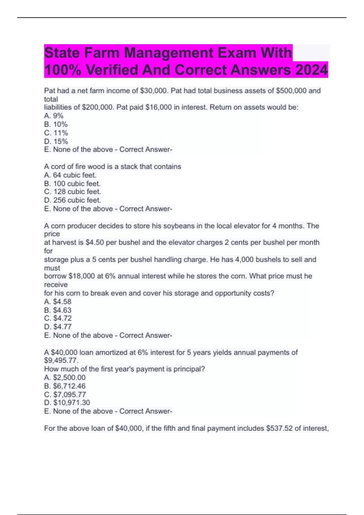 State Farm Management Exam With 100% Verified And Correct Answers 2024
