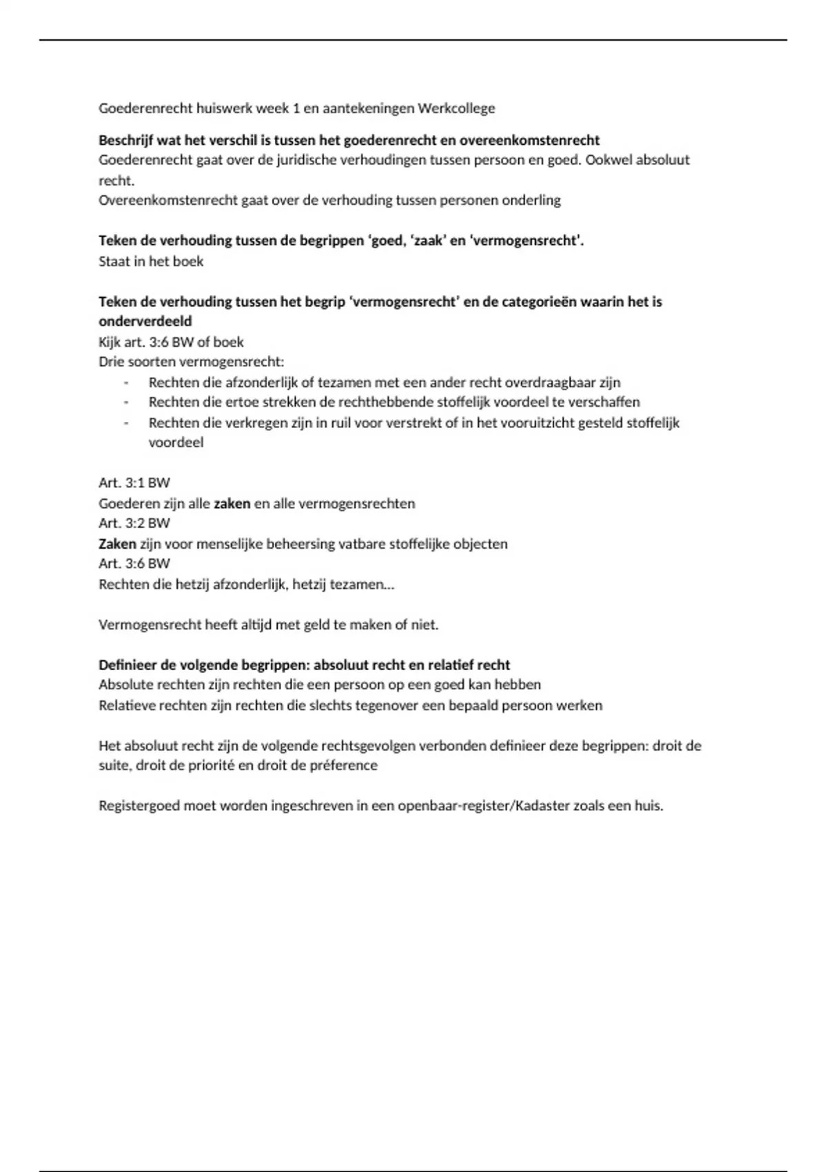 Goederenrecht huiswerk week 1 en aantekeningen Werkcollege