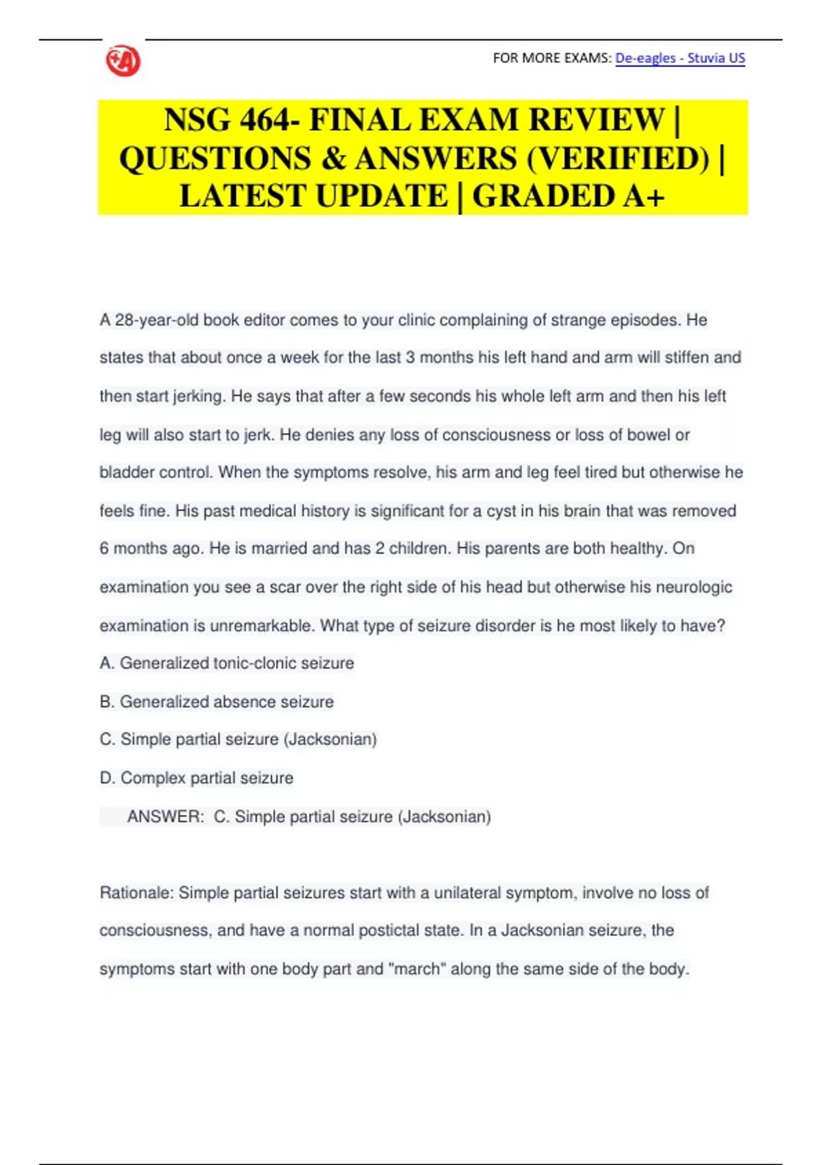 , FOR MORE EXAMS: De-eagles - Stuvia US