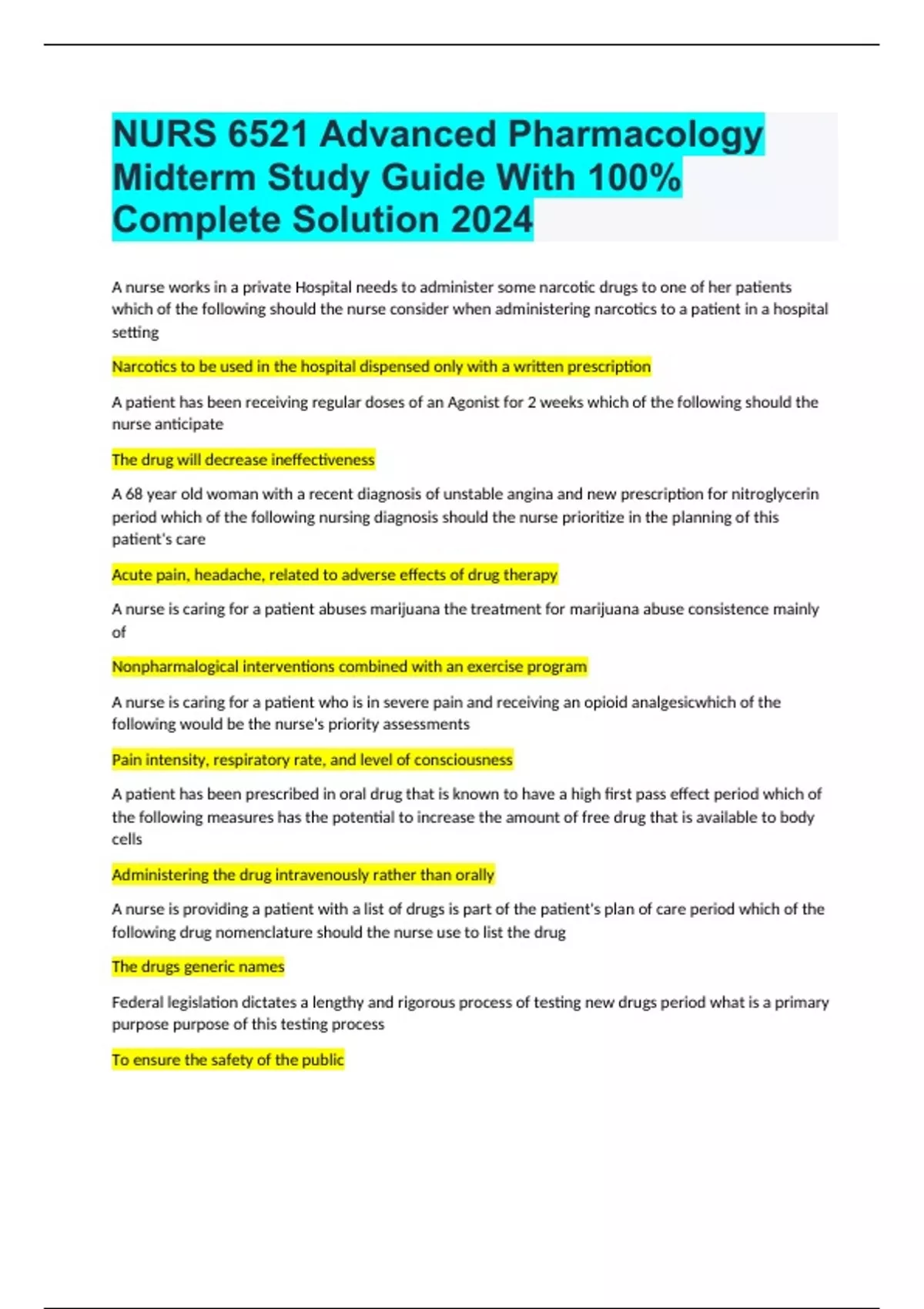 NURS 6521 Advanced Pharmacology Midterm Study Guide With 100% Complete Solution 2024