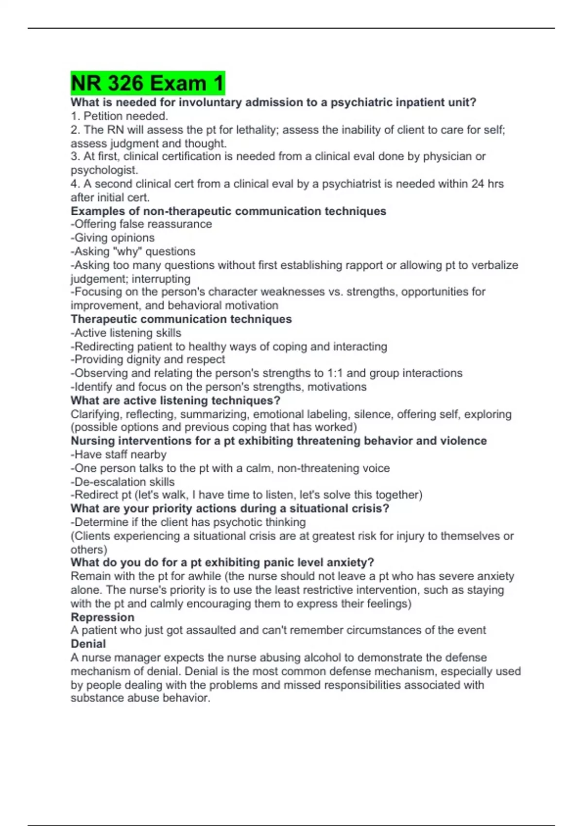 Examples of non-therapeutic communication techniques