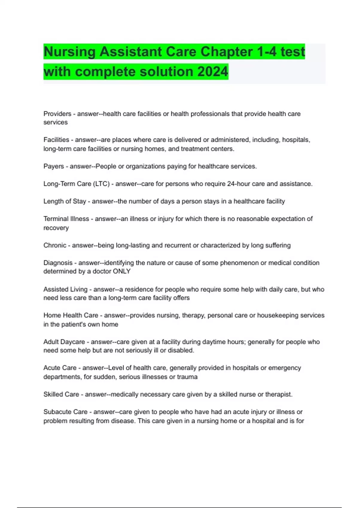 Nursing Assistant Care Chapter 1-4 test with complete solution 2024