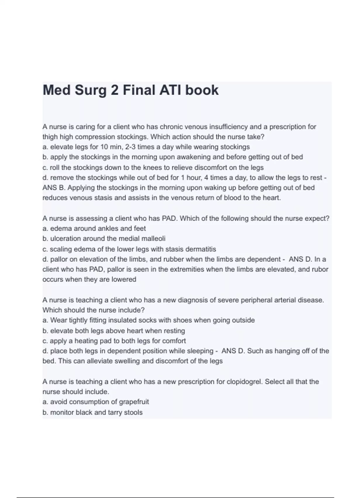 ATI MEDSURG 2 NUR 265 /Final ATI book Questions & Answers Complete Guide