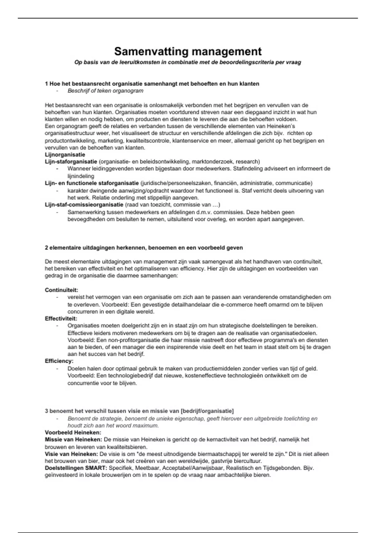 Een organogram geeft de relaties en verbanden tussen de verschillende elementen van Heineken’s