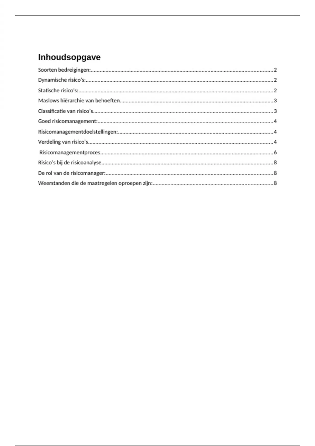 Risico’s bij de risicoanalyse....................................................................................................................8