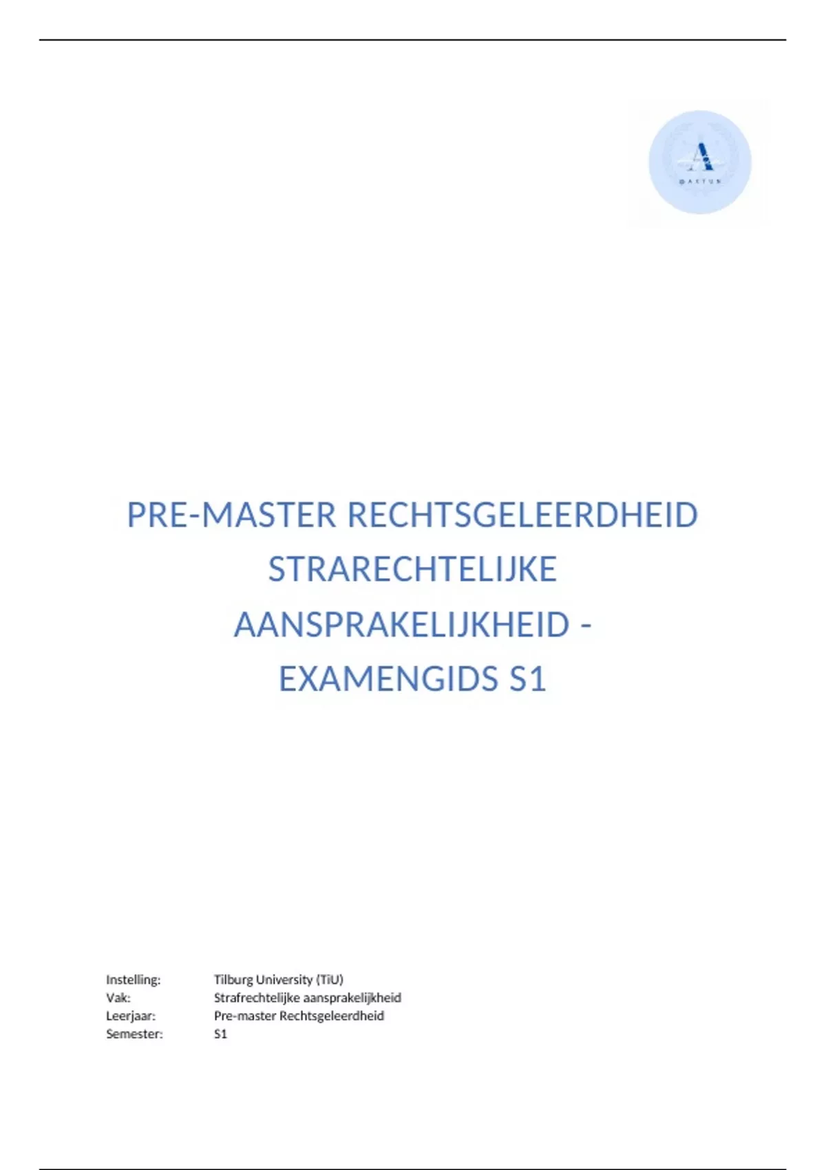 Leerjaar: Pre-master Rechtsgeleerdheid