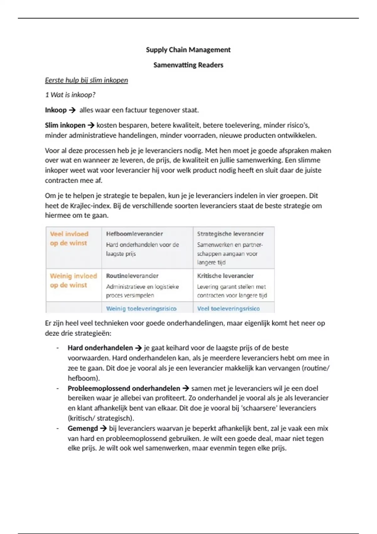 heet de Krajlec-index. Bij de verschillende soorten leveranciers staat de beste strategie om