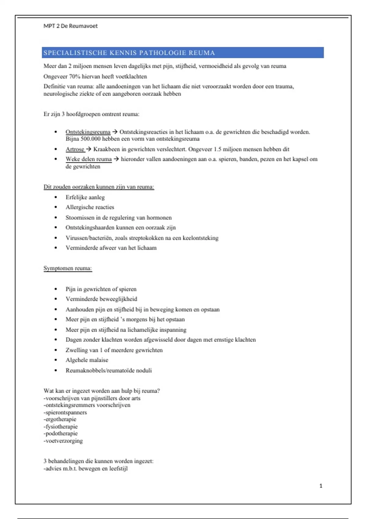 SPECIALISTISCHE KENNIS PATHOLOGIE REUMA