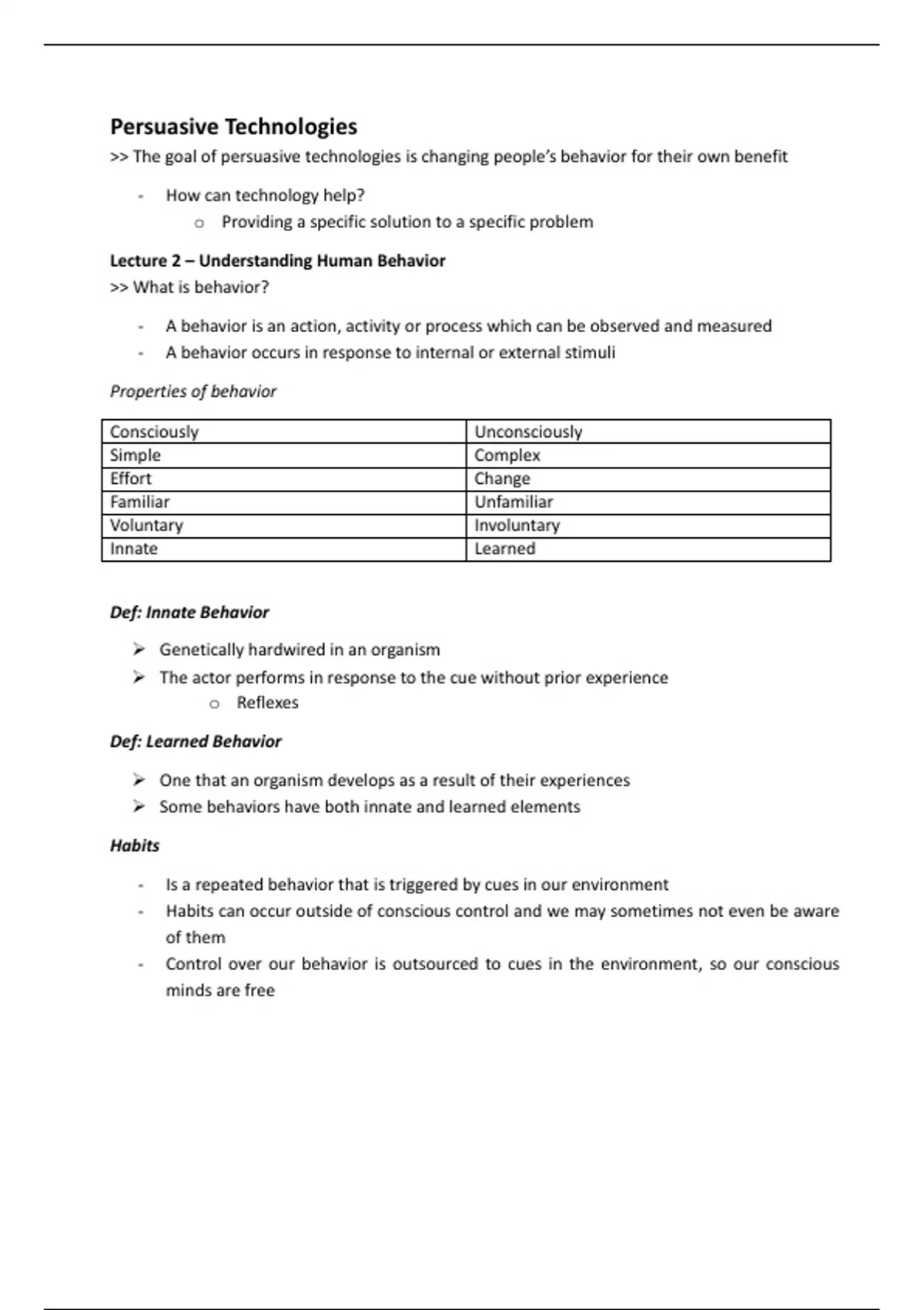 - Control over our behavior is outsourced to cues in the environment, so our conscious