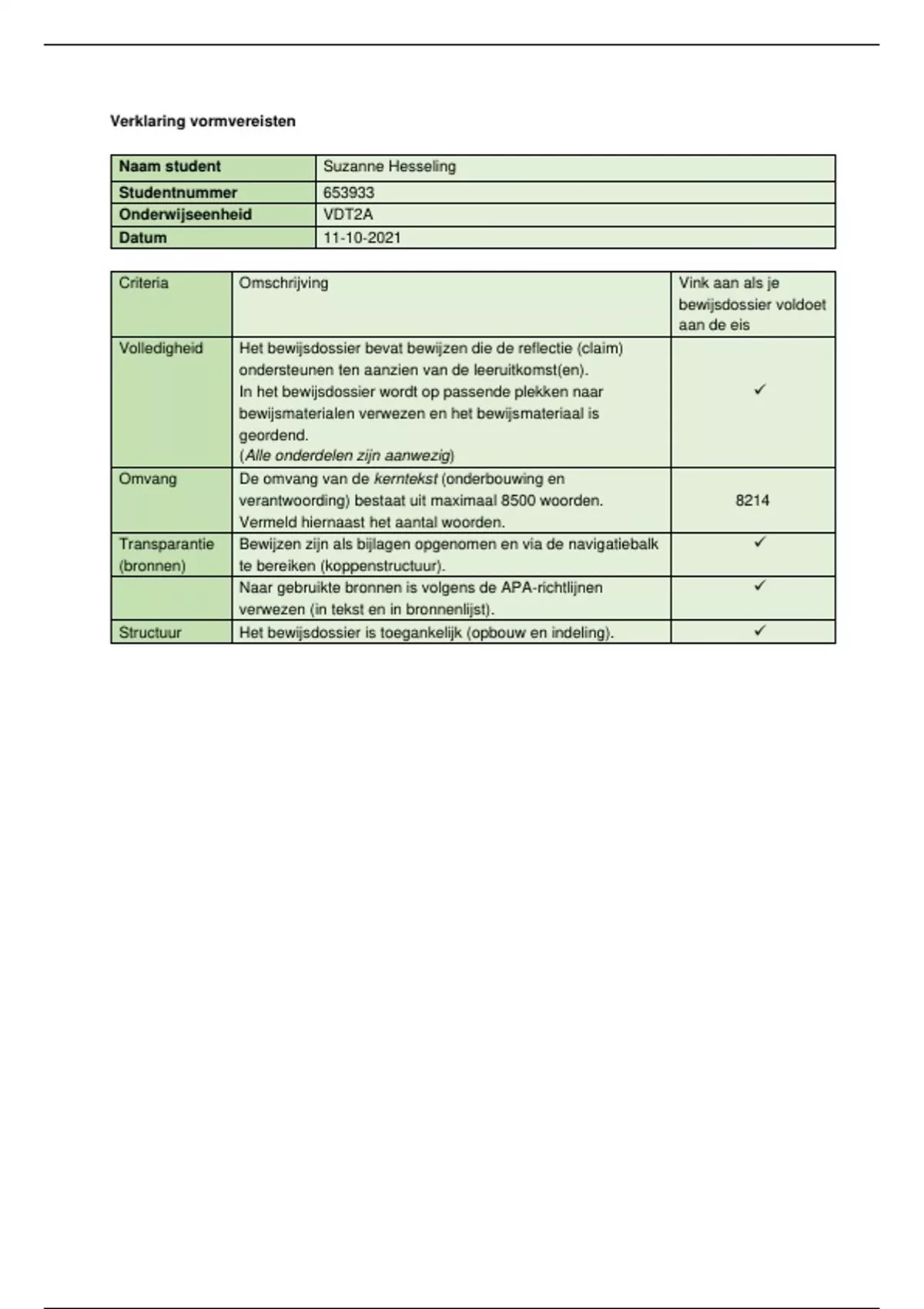 Structuur Het bewijsdossier is toegankelijk (opbouw en indeling). ✓