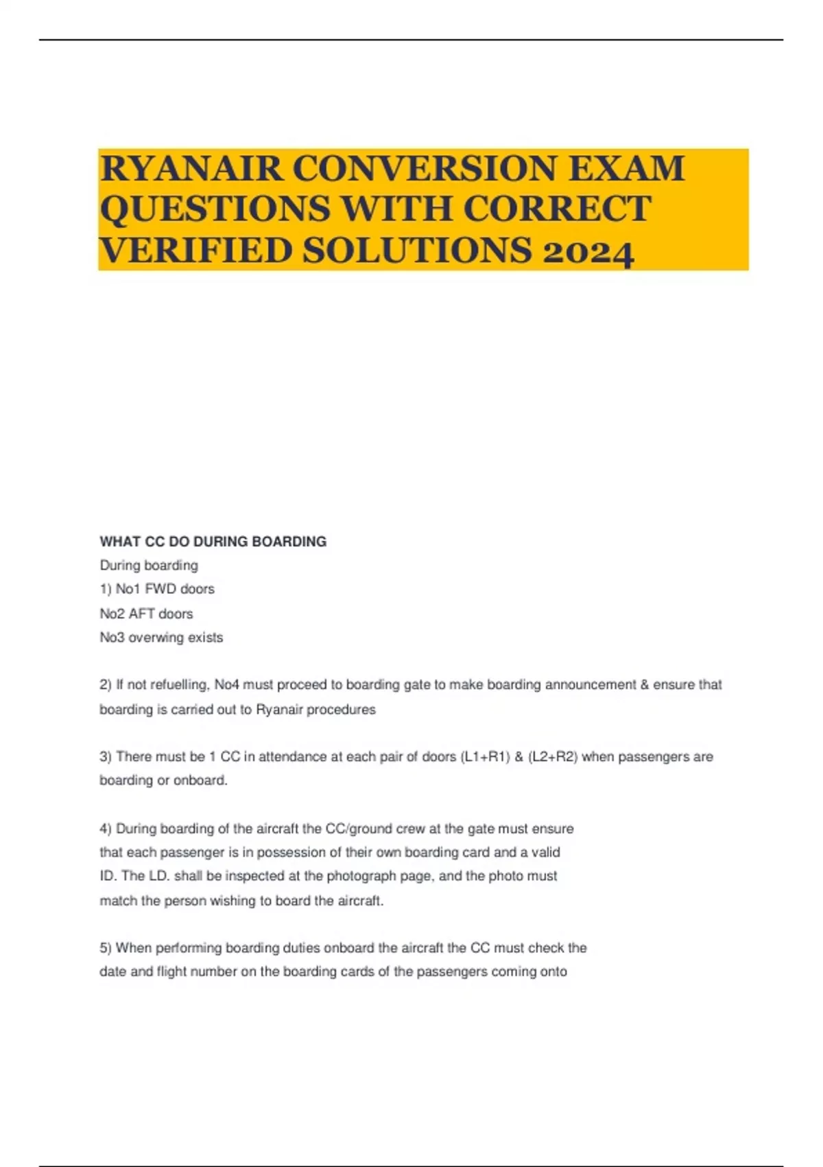 RYANAIR CONVERSION EXAM QUESTIONS WITH CORRECT VERIFIED SOLUTIONS 2024