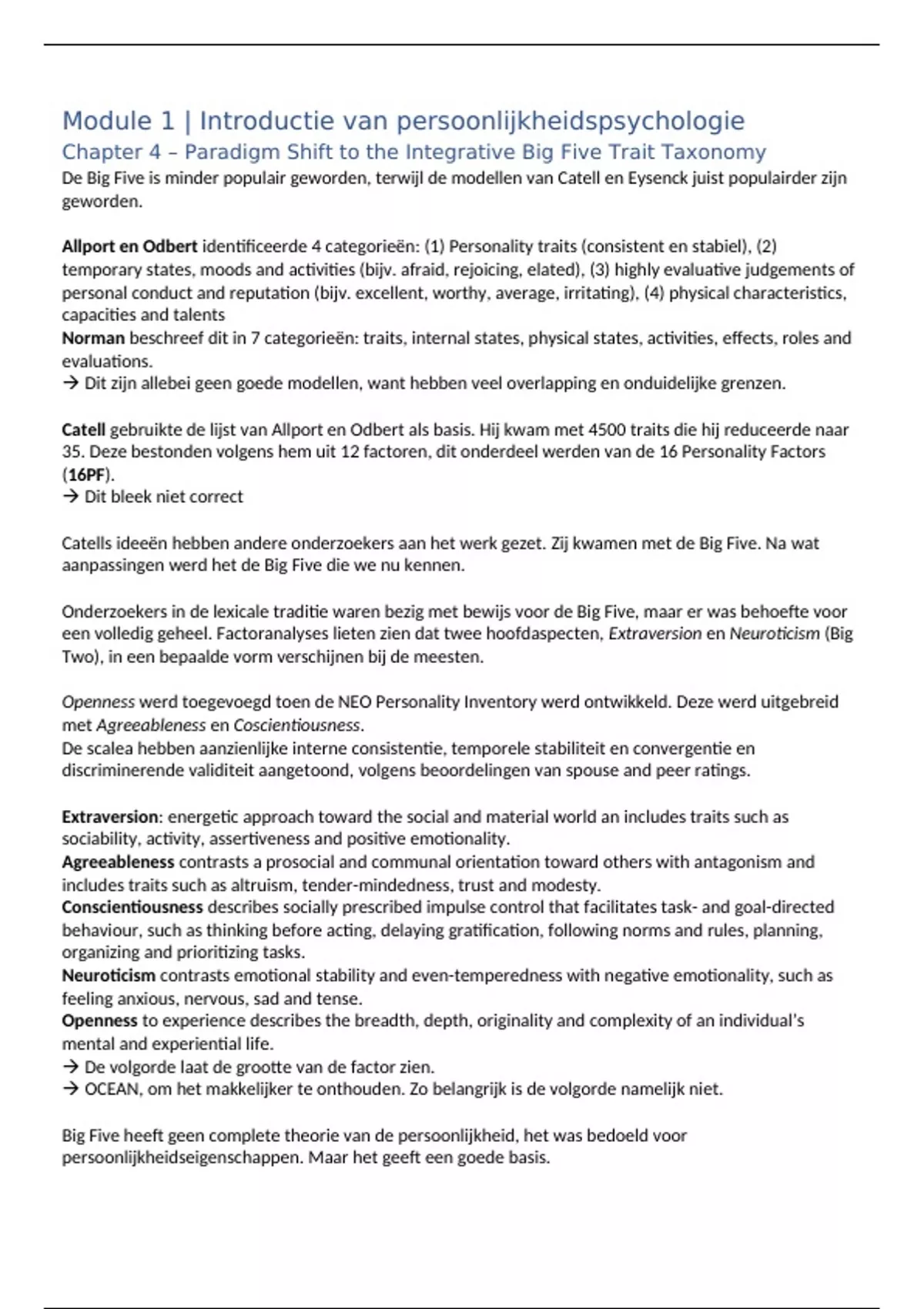 Module 1 | Introductie van persoonlijkheidspsychologie