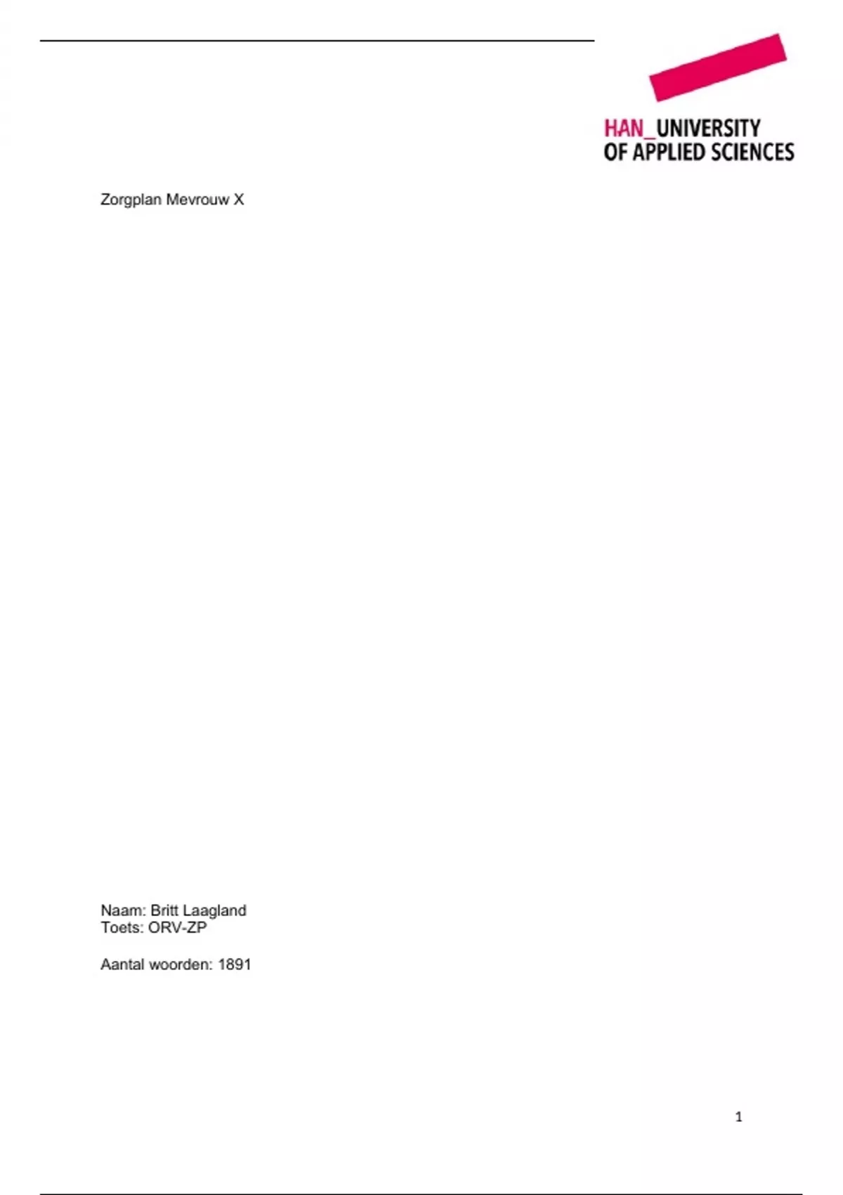 Het zorgplan gaat over iemand met als. In het zorgplan worden gegevens verzameld via de patronen van gordon. Na de gegevens word er een prioritering gemaakt van 3 verpleegproblemen. Er worden 2 verpleegkundige diagnoses uitgewerkt in de vorm van een pesdi. De interventies van de diagnoses zijn deels wetenschappelijk. Mijn zorgadvies is beoordeeld met een 8,0.