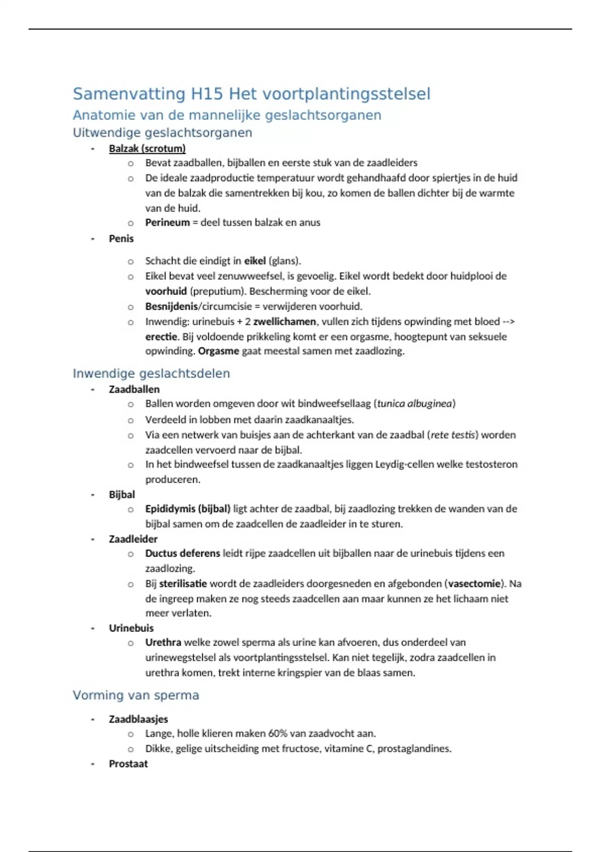 NIEUWSTE samenvatting H15: voortplantingsstelsel